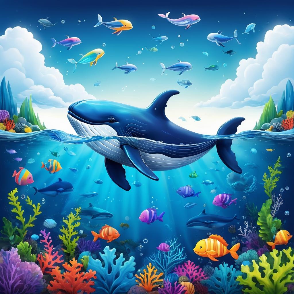 这幅作品以其可爱的风格吸引了观众的注意,鲸鱼和周围环境的简单描绘传达了一种纯真和快乐的情感。为了提升这幅作品,可以考虑增加更丰富的背景细节,例如多样化的海洋生物以及更生动的色彩对比,来增强画面的层次感。此外,尝试在鲸鱼的表情和姿态上做些变化,以赋予其更多的个性和生命力。通过这些改进,这幅作品可以在视觉上更具吸引力,同时传达出更深刻的情感故事。