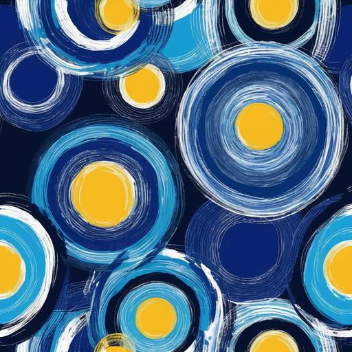 这幅作品主要由两个矩形构图组成,内部填充着多个圆形元素,可能是儿童的涂鸦创作。图形以深蓝色为主色调,给人一种简单而富有童趣的感觉。创作者可能试图通过这些重复的圆形表达某种秩序或图案。