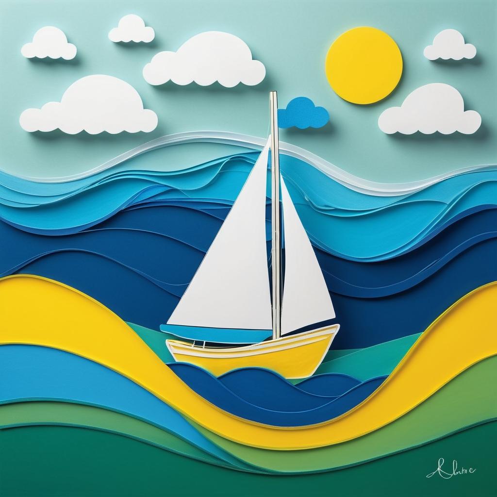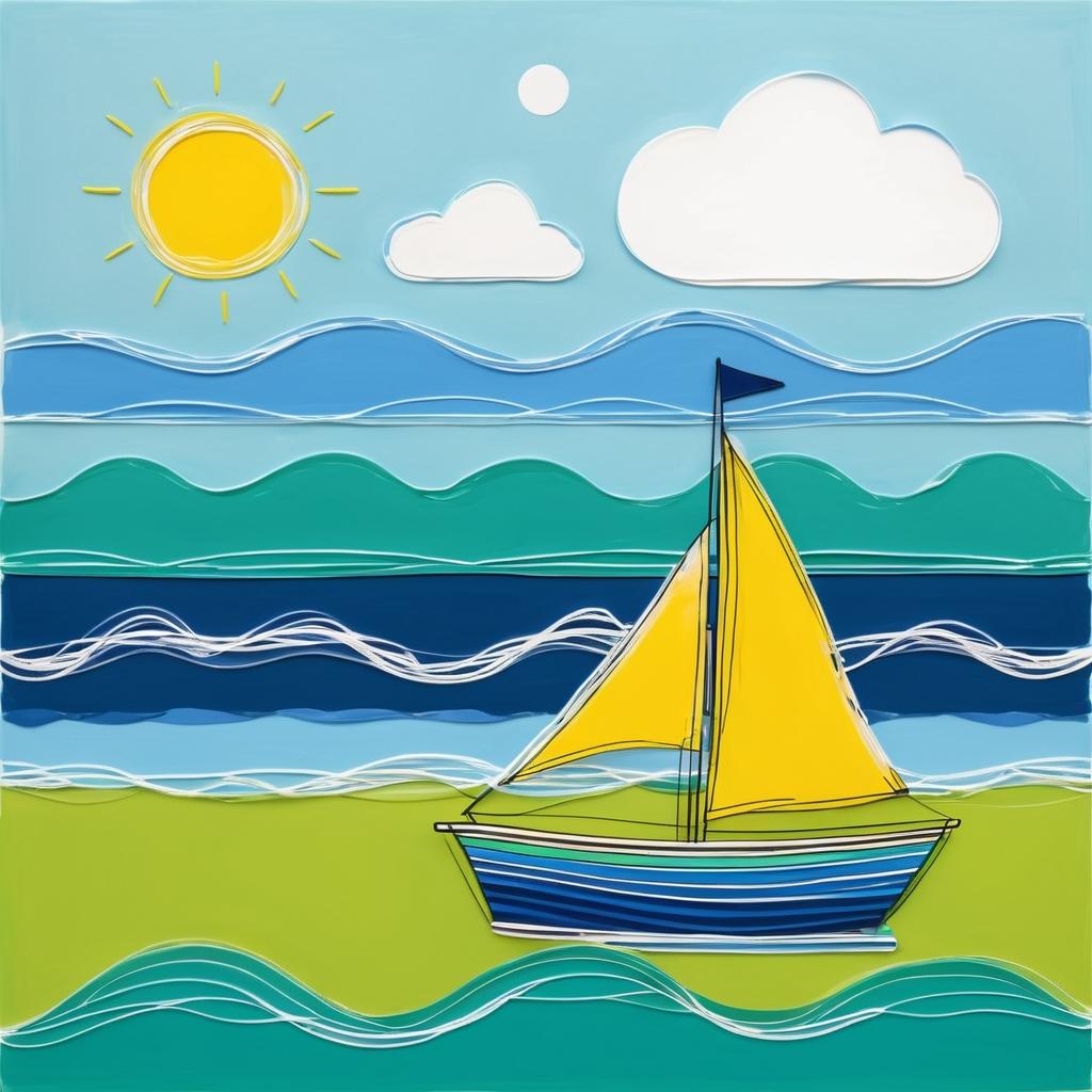 在现代艺术的多样性中,儿童的创作往往被视为纯真和本真的代表。这幅简单的帆船图画,以其简约的线条和形状,展示了一种内在的宁静与欢乐。画面的背景是柔和的绿色,使人联想到平静的海面,而帆船由蓝色和黄色的线条勾勒,简单却富有表现力。这样的作品不仅仅是视觉上的享受,更是对童年无忧无虑的生活的礼赞。