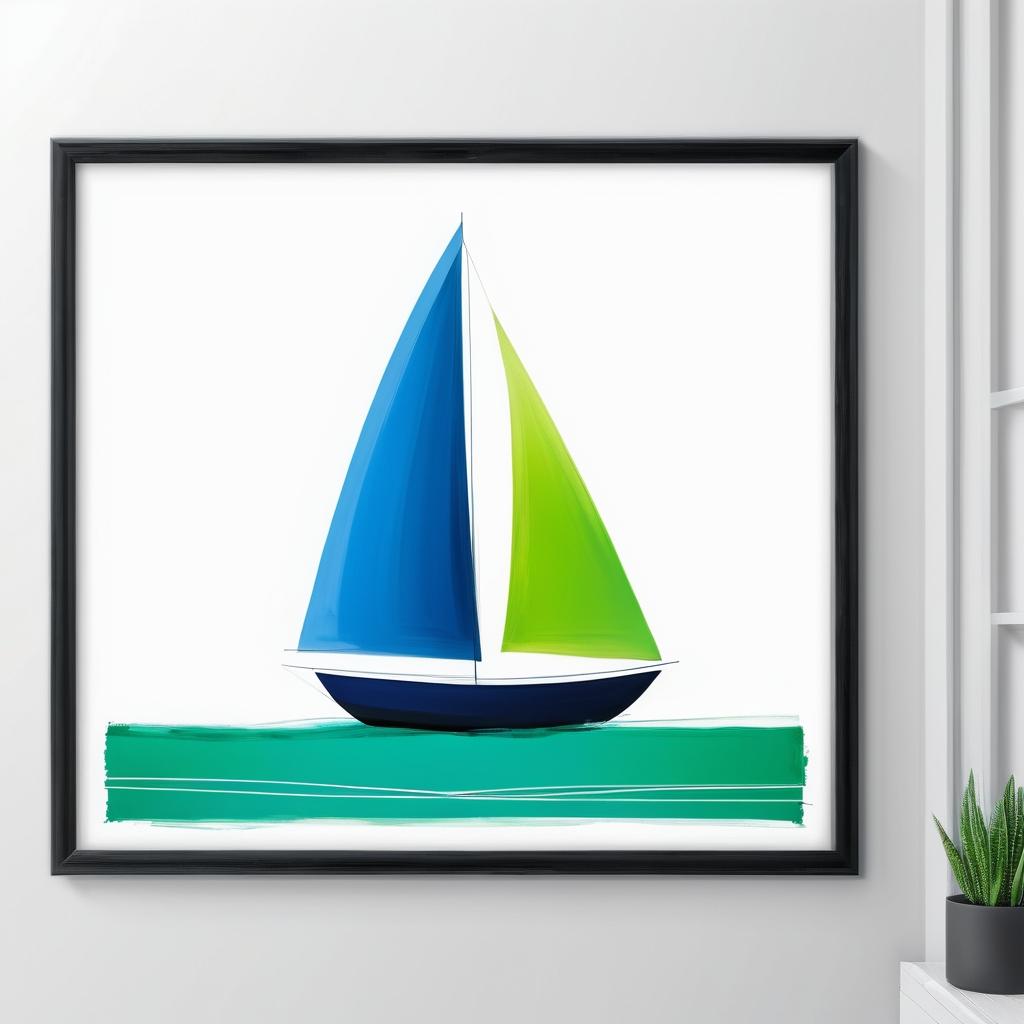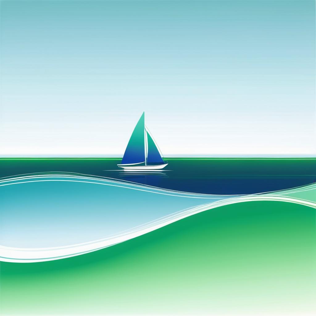 这幅画简单地描绘了一艘船,采用了蓝色和绿色的线条。背景呈现出模糊的渐变色,使得画面显得非常简约。画面中没有复杂的细节,简单的线条传达了一种轻松和愉悦的情感。创作者可能意在表达一种童趣或返璞归真的感觉。