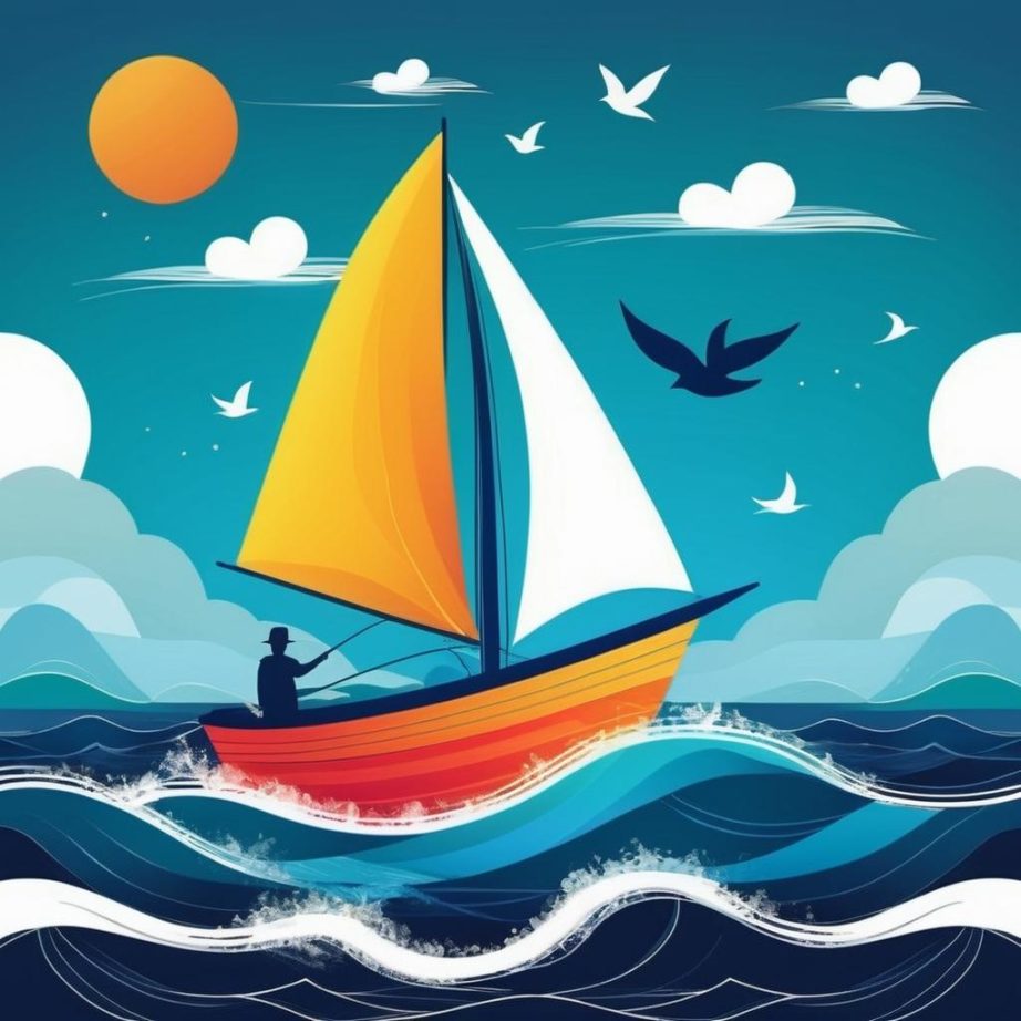 为了使这幅作品更具深度和艺术性,可以考虑在背景中使用渐变色彩,模拟天空和海洋的变化。这不仅能增加画面的层次感,还能更好地吸引观众的眼球。此外,画面中的船可以加入更多细节,例如船上的人物或动物,以丰富故事性,并建立更强的情感联系。在风的表现上,使用更多色彩和线条变化,能够让风力的动感和方向感更为明显。通过这些改进,作品不仅在视觉上更加丰富,也在情感上更能引起观者的共鸣。