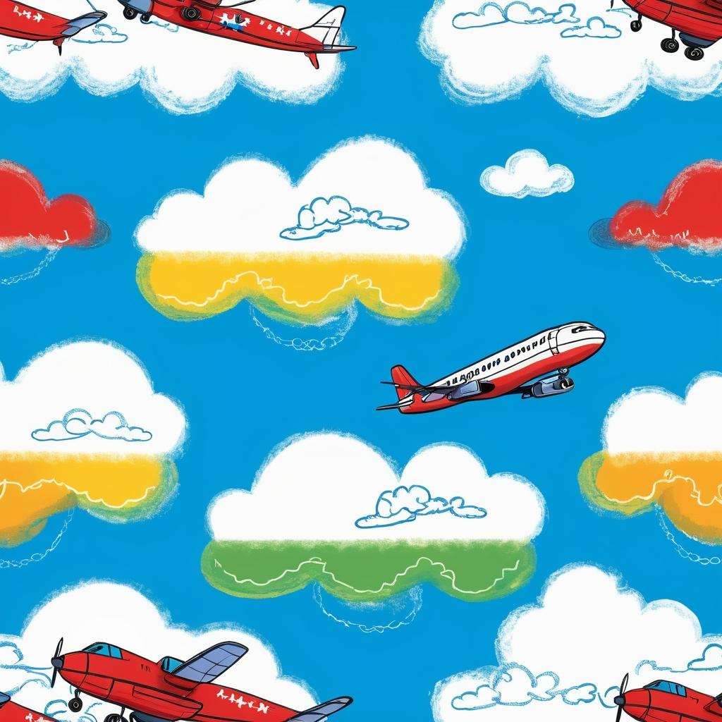 这幅作品以其简单的线条和形状展现了孩子对天空和飞行的幻想。为了提升作品,可以鼓励孩子使用更多的颜色和细节,比如在云朵和飞机中添加不同的色彩和纹理,以丰富画面的层次感。此外,可以引导孩子在画面中加入更多的故事元素,比如其他飞行物或地面景观,使作品更具情节性和趣味性。通过这种方式,孩子不仅能提高绘画技巧,还能更好地表达自己的想法和情感。