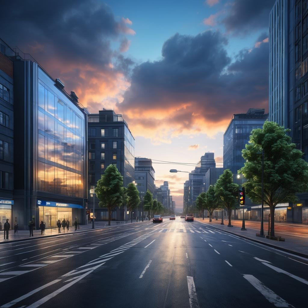 這幅作品的主要特點是對自然光線的捕捉,尤其是在日落時分的微妙變化。畫面中的燈光與自然光交織,營造出一種獨特的氛圍感。提升建議包括加強對天空色彩的層次表現,並在細節處理上更加精緻,如雲層的細節和建築物的陰影。這將使作品在描繪城市黃昏的情感上更具深度。另外,可以考慮加入一些動態元素,如行人或車輛,進一步豐富畫面的故事性。