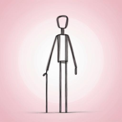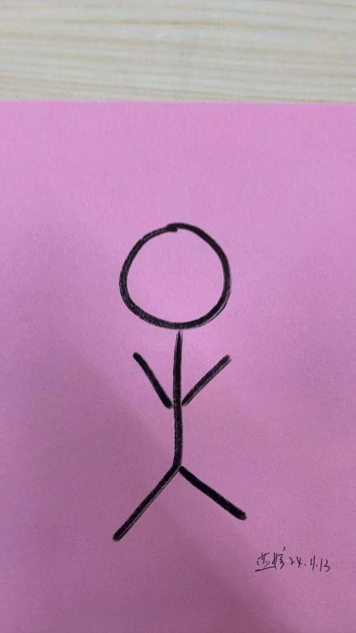 这幅作品呈现了一个简单的火柴人图像,绘制在粉色背景上。线条简单而直接,整体构图传达出一种简约之美。粉色背景为图像增加了一丝柔和的情感,可能意在表达一种轻松或愉悦的心情。创作者可能想要通过极简主义来传达一种纯粹、直接的视觉体验。