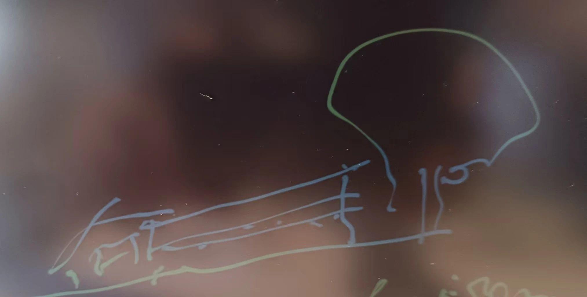 这幅手稿展示了具有抽象性质的线条设计。线条运用流畅,呈现出一种动态的姿态,同时形状的构造简单而富有表现力。颜色上使用了柔和的蓝绿色调,给人以宁静的感觉,同时也为作品增添了深度。构图上,整体布局平衡,线条的交错形成了一种自然的流动感,暗示了一种潜在的故事性。