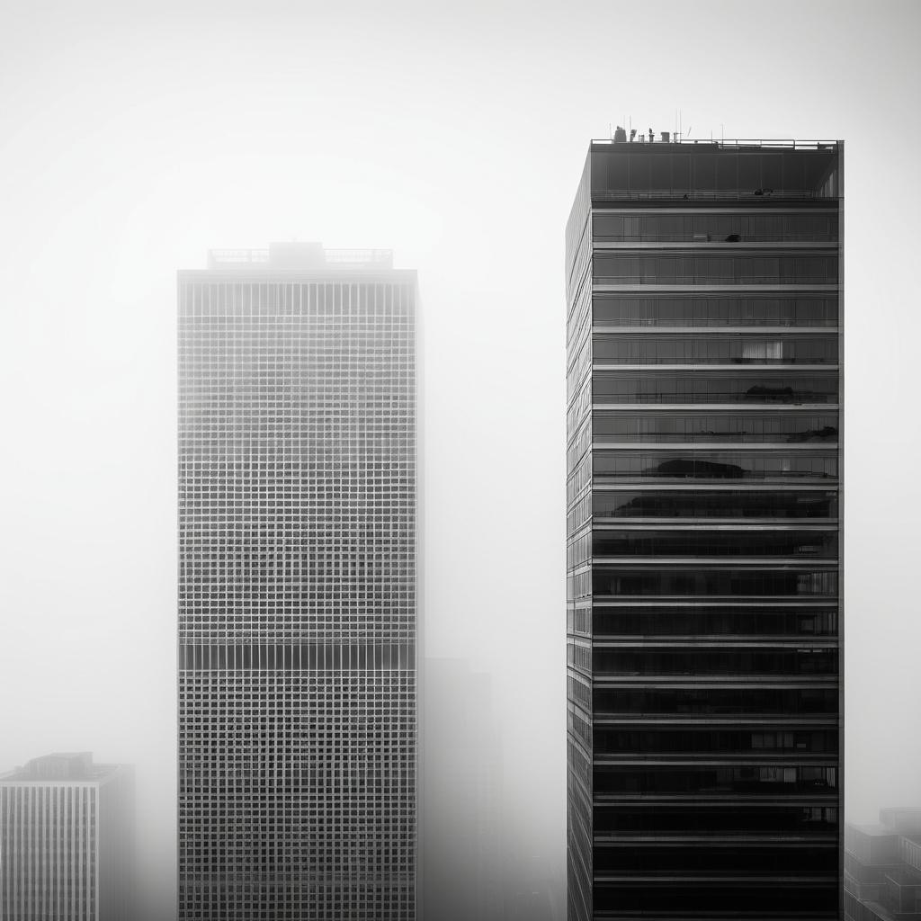 在现代城市摄影中,雾气常常被用来创造一种独特的氛围。这幅作品通过浓雾中的城市建筑剪影,成功地展现出了一种神秘而宁静的城市风貌。画面的灰色调与柔和的光影效果交织在一起,给观者带来一种沉静的视觉体验。太阳微弱的光芒试图穿透浓雾,这一细节不仅增加了画面的层次感,还巧妙地传达了一种压抑中带有希望的情感。