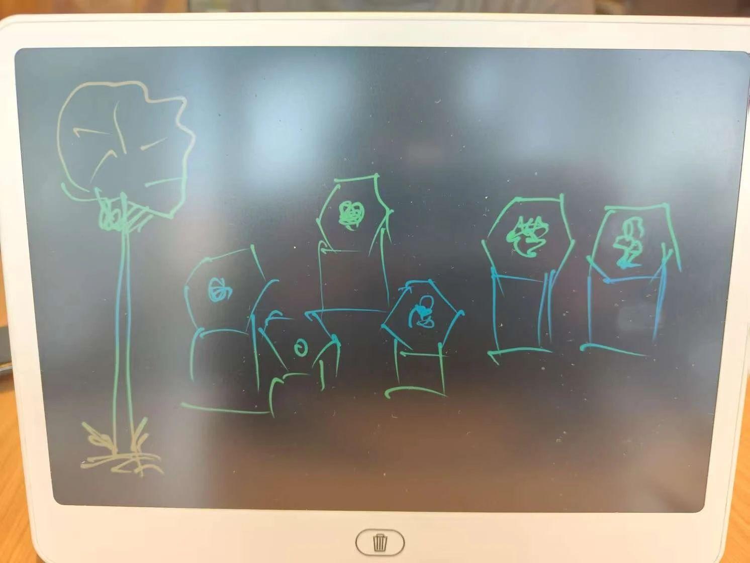 这幅作品以其简约的线条和色彩运用,唤起了生命与纪念的主题。树象征着生命的延续,而旁边的形状可能代表着对过去的纪念。为了提升这幅画的艺术性,可以加入更多的细节,比如在树上添加树叶的细节,使其更具生命力;在几何形状上加入一些象征性的图案或文字,增强其纪念意义。将背景扩展为一个更具叙事性的场景,比如一个公园或纪念园,使得整幅作品在视觉上更加完整,也能更好地传达其内在的情感故事。