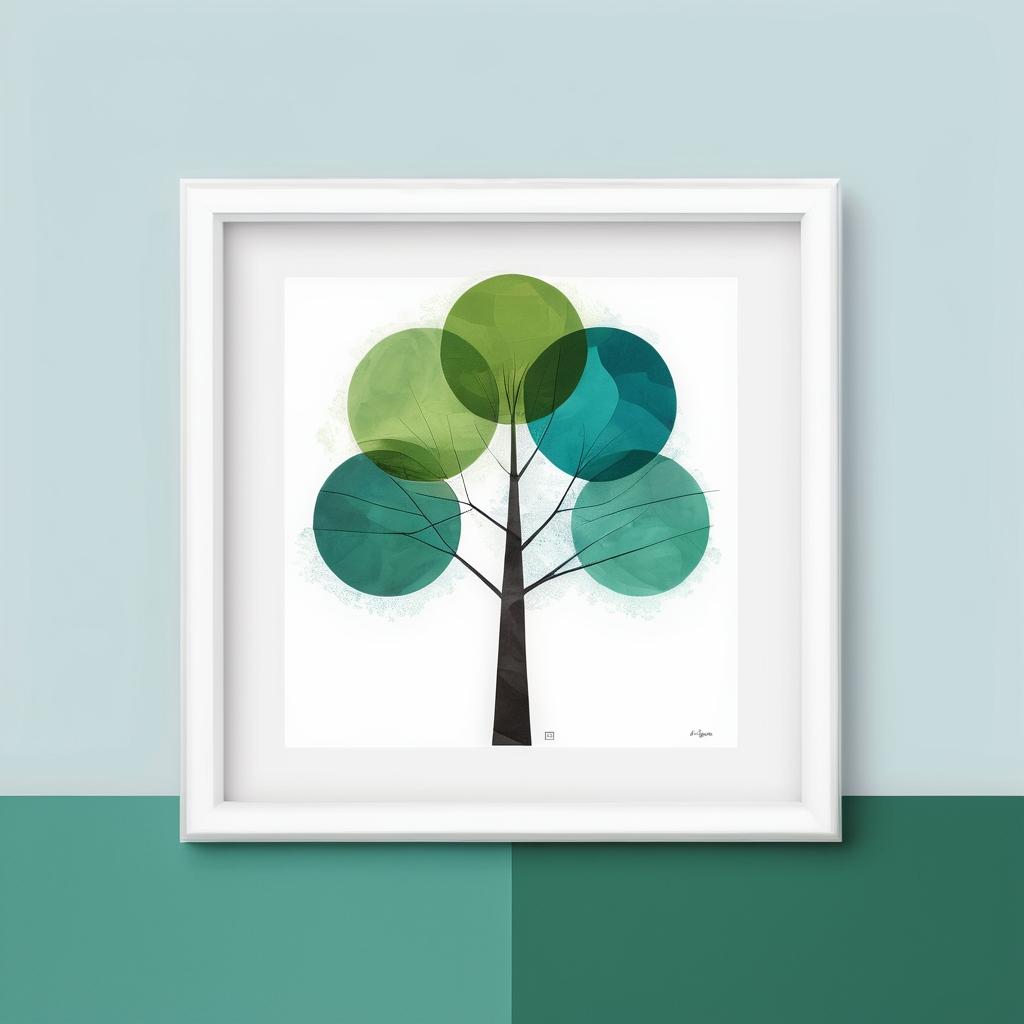 这幅作品通过简单的线条和颜色,巧妙地表达了生命的延续与纪念的主题。画面中的树以其高耸的姿态象征着生命的繁茂,而旁边排列的几何形状则可能代表着我们对已逝之人的怀念。绿色和蓝色的搭配使得整幅画面充满了宁静与神秘感,仿佛在诉说着每个人心中那一丝对生命轮回的感悟。