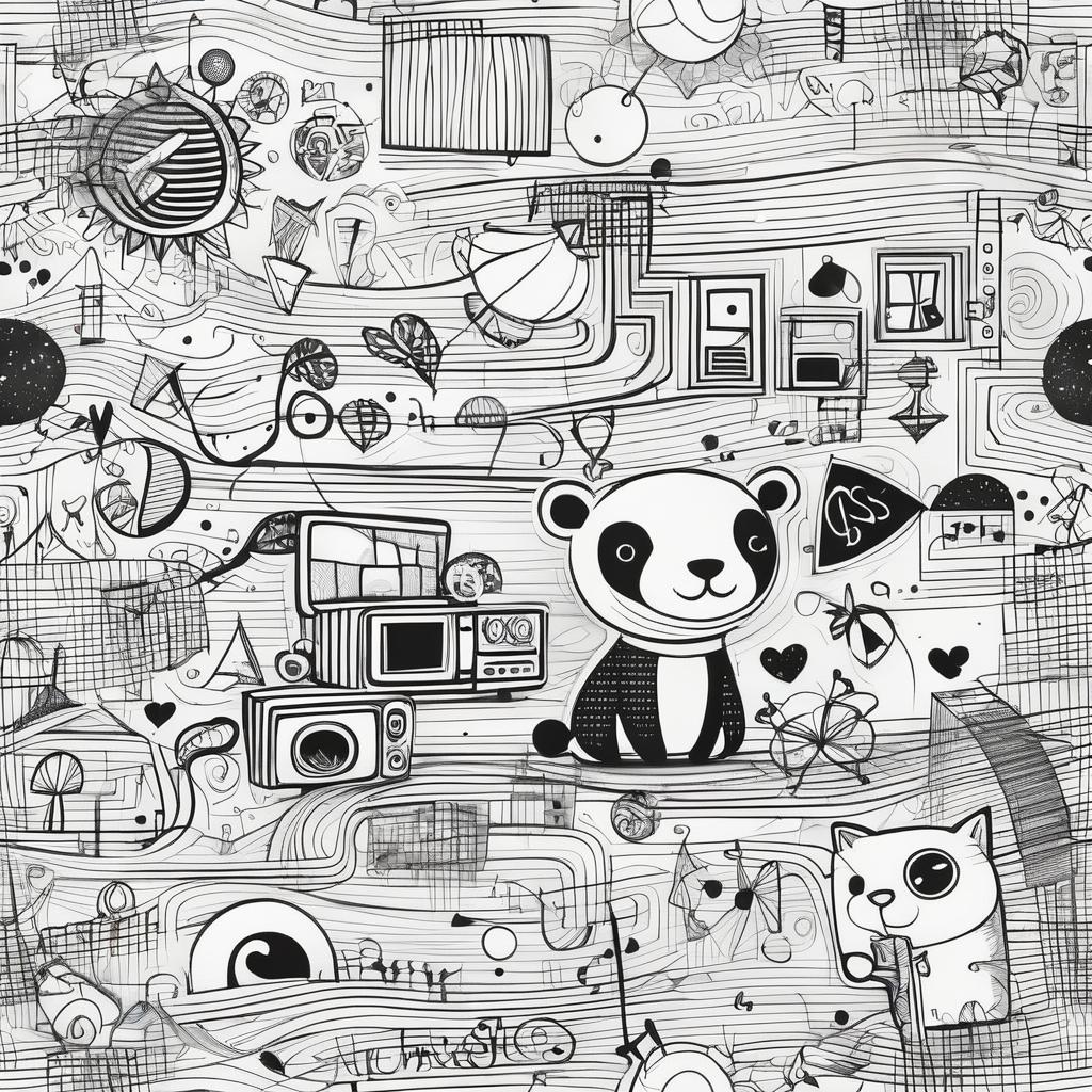这幅作品表现出一种天马行空的想象力,结合了多种元素如动物、人物和符号,形成了一种混合的视觉语言。为了提升这幅作品,可以考虑增加一些主题性,使画面更具连贯性。例如,选择一个特定的故事或场景,让每个元素都为这个主题服务。同时,可以通过色调的调整来突出某些关键元素,使整体视觉效果更为和谐。此外,加入一些细腻的细节描绘,可以增强作品的深度和观者的情感共鸣。这将使作品不仅仅是随机的涂鸦,而成为一个具有叙述性的艺术品。