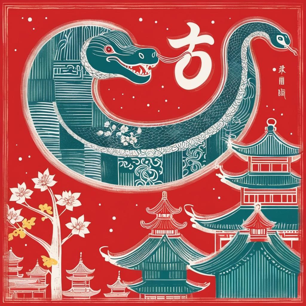 创作灵感来自于将传统年画的庄重风格转化为更适合儿童和国际观众的Q版风格设计。建议使用卡通化的蛇形象,通过夸张的表情、活泼的动作和柔和的色彩搭配,使画面充满趣味性。同时,融入一些国际观众熟悉的象征元素,如和平的橄榄枝、代表希望的彩虹等,传递共融和祝福的寓意。背景可以采用简化的祥云、山水或花卉元素,搭配现代几何构图,增强画面的层次感和观赏性。