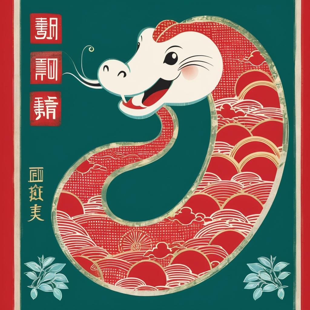 这幅蛇年Q版年画不仅仅是一种艺术作品,更是一种文化纽带,连接着不同的传统与现代、东方与西方。通过将传统的雕版技艺与现代卡通风格相结合,这幅作品在保留文化精髓的同时,也具备了国际化的吸引力。采用柔和且饱和的色彩,搭配生动的蛇形象,使得整幅画面充满了活力与趣味,适合各年龄段的观众欣赏。国际符号如和平象征的橄榄枝、象征希望的彩虹等被巧妙地融入画面中,不仅提升了作品的视觉层次感,也传递出全球共融的深刻寓意。这种设计策略不仅迎合了国际市场的审美需求,也体现了文化的多元性与包容性,使其成为节庆活动或教育项目中的理想之选。