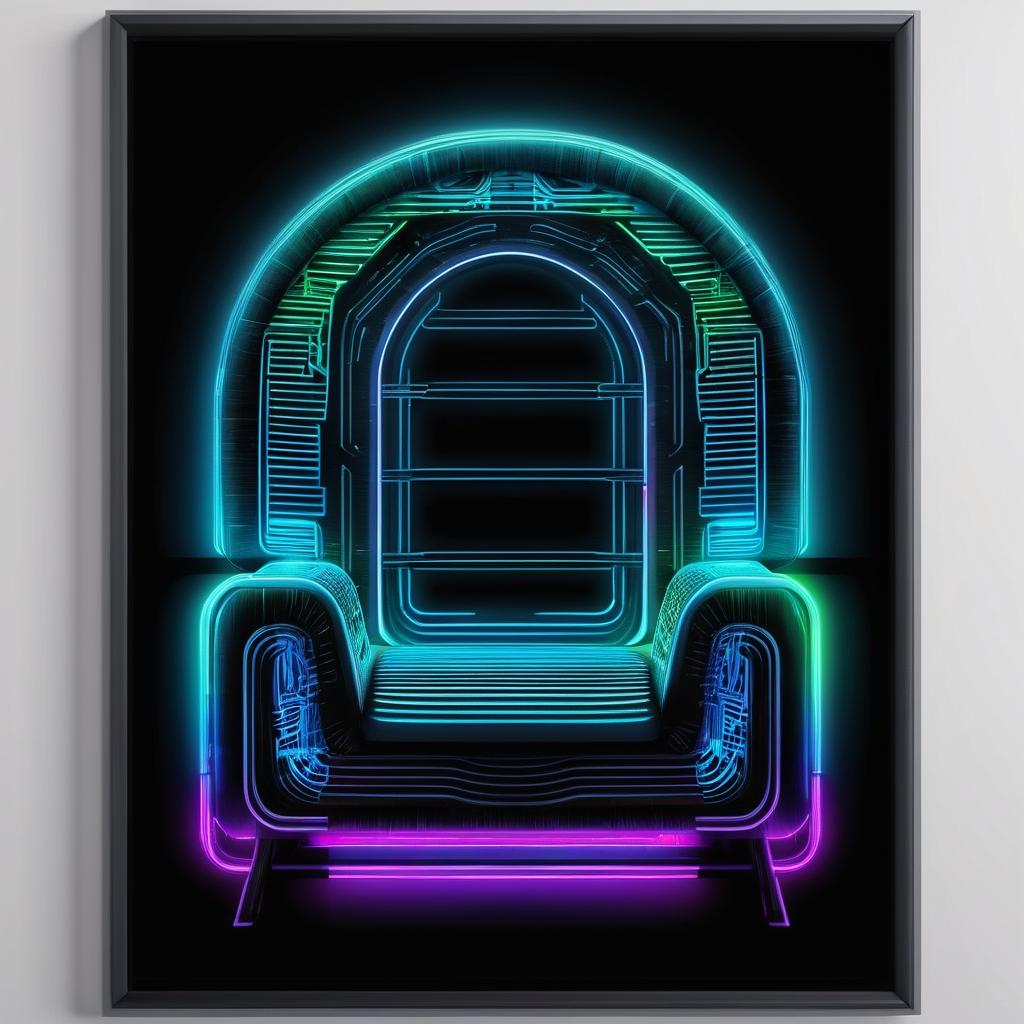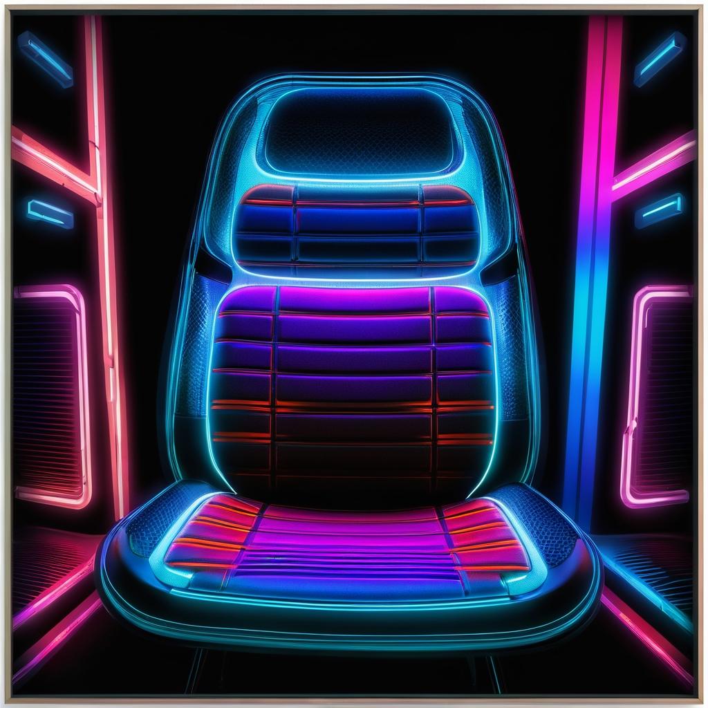 这幅作品通过椅子表面的重复图案和高对比度的色彩,营造出一种独特的视觉体验。创作者可能旨在传达现代城市生活的节奏感和科技感。为了增加作品的深度,可以考虑加入更多的背景元素,例如城市的剪影或灯光效果,以增强作品的情感层次。通过使用渐变的色调和更复杂的图案,能够使作品在视觉上更加丰富。此外,可以尝试不同材质的表现,以增加触感和立体感。
