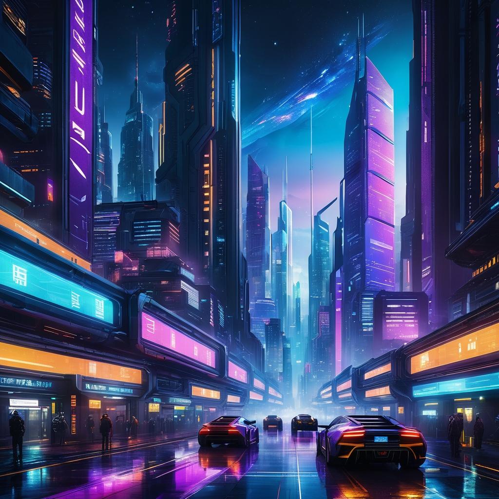 为了进一步提升作品的艺术性,建议在构图上进一步强化对称性,增加更多细节来丰富画面,例如在街道上加入行人或车辆,以增强动态感。同时,可以在色彩上尝试更多的对比,例如在冷色调中加入更多的暖色元素,以突出城市的活力。此外,可以考虑在画面中加入一些未来科技元素,如飞行器或全息投影,以增强未来感。通过这些改进,作品将更具深度和艺术性,能够在现代都市艺术领域中脱颖而出。