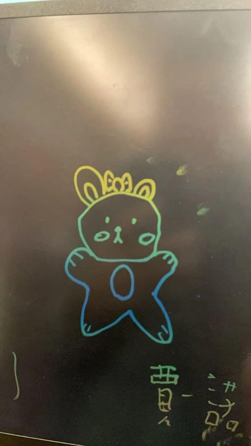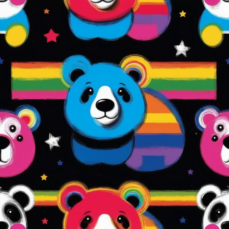 在这幅作品中,我们看到了一只用彩虹色线条勾勒而成的小熊,简洁的线条和鲜明的色彩使其在黑色背景上显得格外醒目。这种创作风格让人联想到儿童绘画中常见的大胆用色和简约造型,传达出一种天真无邪的情感。作品的底部有一行不甚清晰的文字,可能是创作者的标记,增加了作品的个性化。一位儿童艺术专家可能会建议在这幅作品中增加一些背景细节,比如星星或云朵,来丰富故事性,使整个画面更加生动。此外,小熊的表情和姿态也可以进行微调,以增加其动态感和情感表达。这样的调整不仅能吸引儿童的目光,也能在艺术展示中为观众带来更多的想象空间。这幅作品在艺术类别上属于插画,风格上与村上隆的波普艺术有些相似,极具视觉冲击力和趣味性。