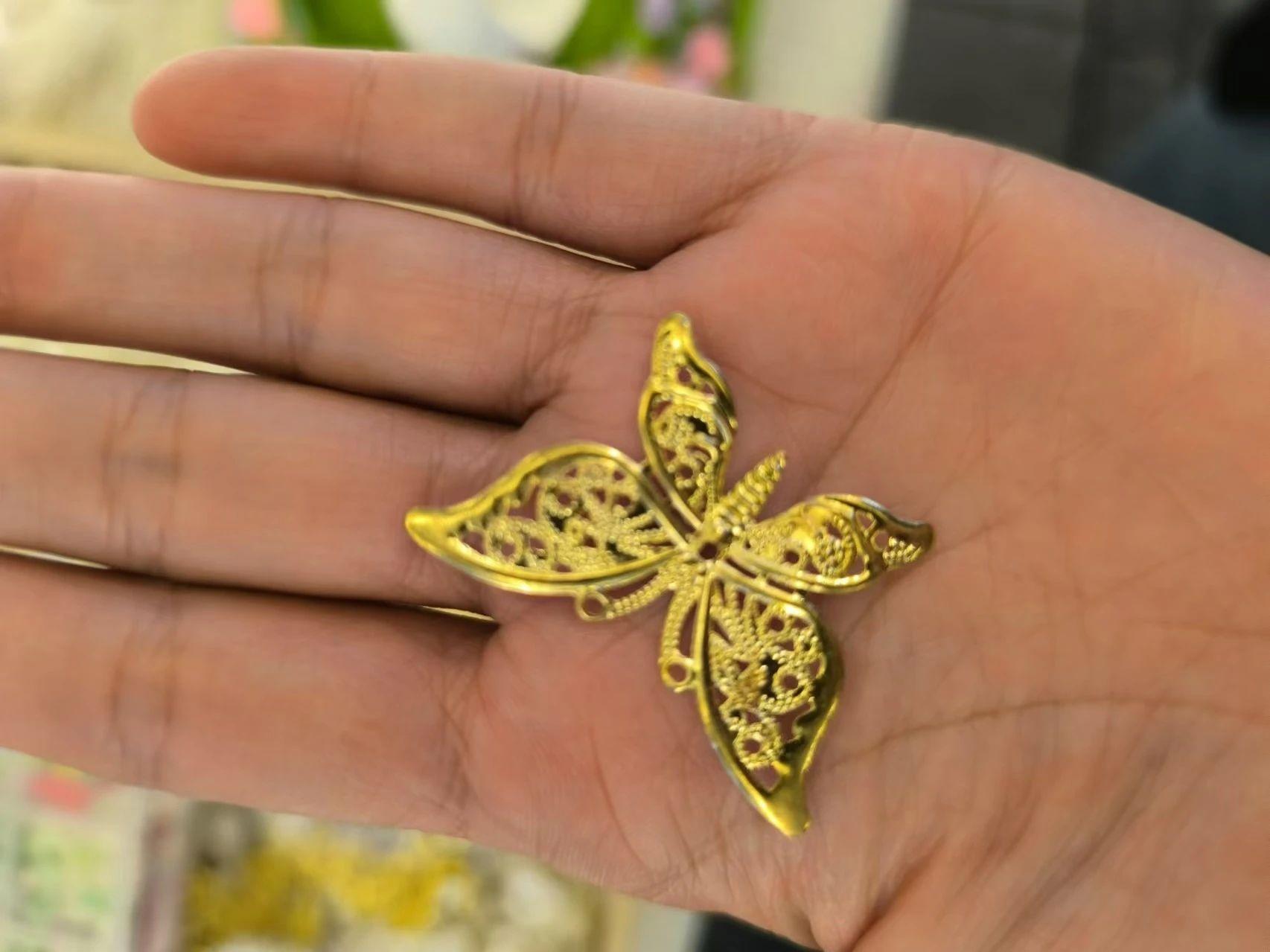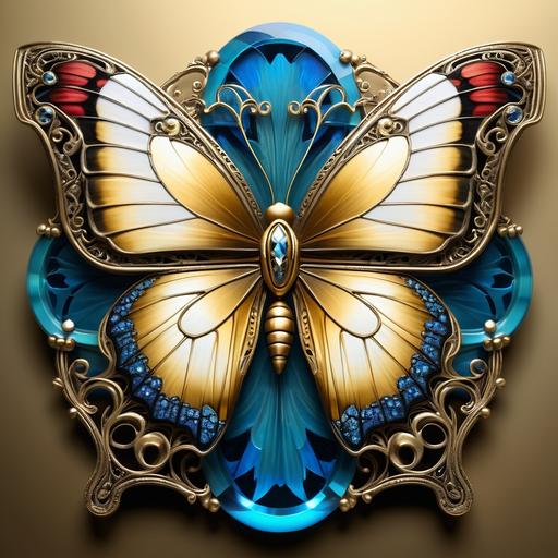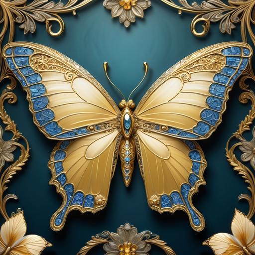 作品中的金色蝴蝶象征着高贵与美丽,其精致的镂空设计展现了工艺的复杂性和艺术的精细度。建议可以通过增强光影效果来突出蝴蝶的立体感,让其在视觉上更加突出。同时,可以考虑在背景中加入一些具有象征意义的元素,如自然景物,以更好地衬托蝴蝶带来的生命力和活力。这样的处理不仅能增加作品的深度,还能在观者心中激发出更多的情感共鸣,赋予作品更深刻的寓意。