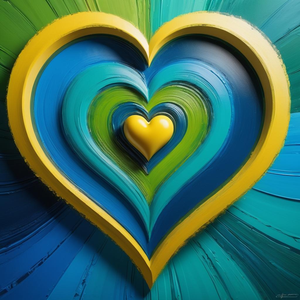 在这幅作品中,我们可以看到一种纯粹而直接的情感表达,仿佛是从孩子的视角出发,展现了他们眼中的世界。这种涂鸦风格的艺术形式,不仅仅是一种视觉上的享受,更是一种心灵的释放。画中使用了蓝色、绿色和黄色三种主色调,形成了一个活泼而富有生命力的画面。中心的心形元素,似乎在传达一种内心深处的关怀或爱意。艺术创作不仅仅是技法的展示,更是创作者心灵的写照。通过这种无拘无束的创作方式,艺术家能够更自由地探索自我,并与观众建立一种深层次的情感连接。为了使作品更具叙事性,创作者可以尝试加入更多具体的形状或符号,这将使观众在欣赏时有更多的联想和思考空间。
