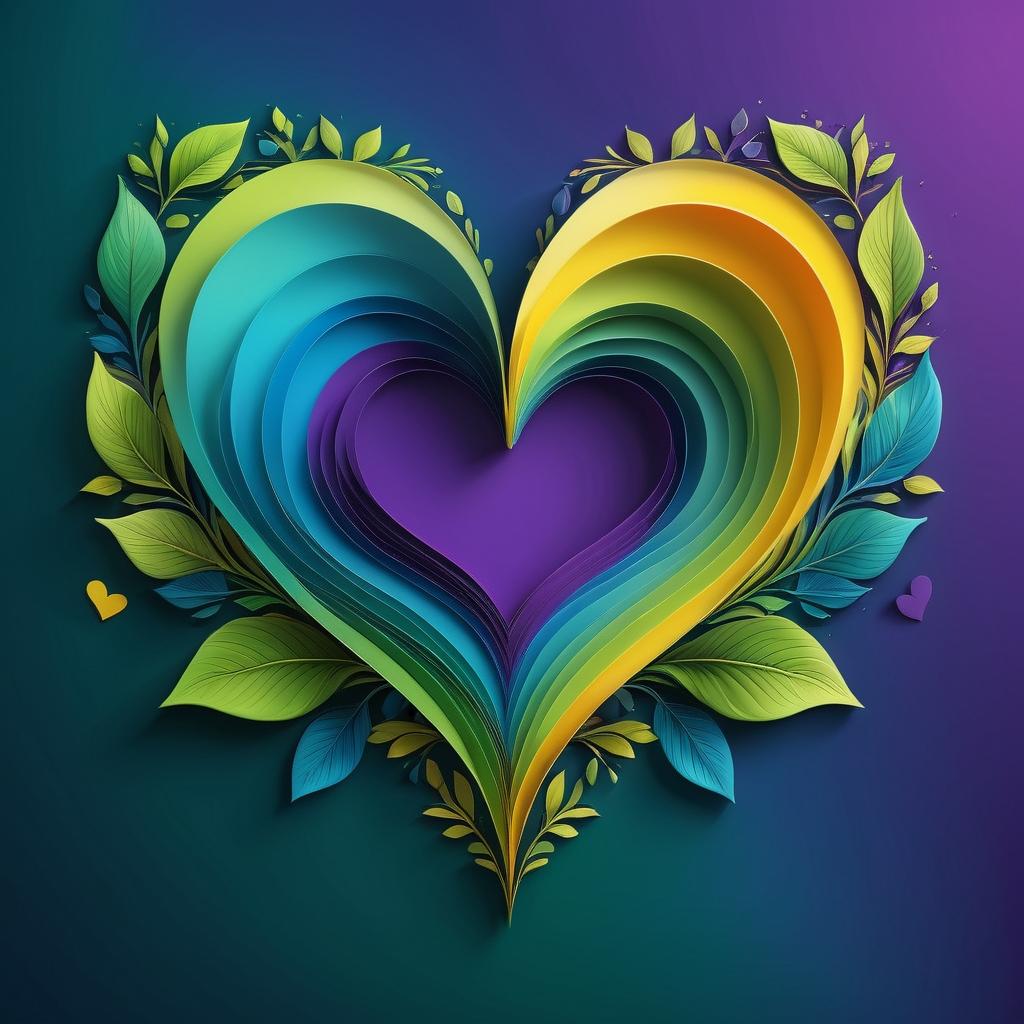 这幅作品以多层次的心形结构和鲜明的色彩组合展示出其独特的魅力。通过蓝色、绿色和黄色的渐变色调,艺术家成功地传达出温暖和谐的情感。心形从中心向外扩展,象征着爱与关怀的无尽延伸。色彩的选择不仅增强了作品的视觉冲击力,同时也赋予了其深刻的情感内涵。为了进一步提升作品的艺术深度,可以在背景中融入自然元素,如树叶或花瓣,使作品与自然主题更加契合。此外,通过加入对比色如紫色或橙色,可以丰富作品的色彩层次,增强其视觉吸引力。这些细节的调整将使作品在情感表达上更加多元,观者在欣赏时能够体验到更深层次的共鸣。这种情感艺术的表达为观者提供了一个反思和感知爱的机会,使其在视觉和情感上都能产生强烈的共鸣。