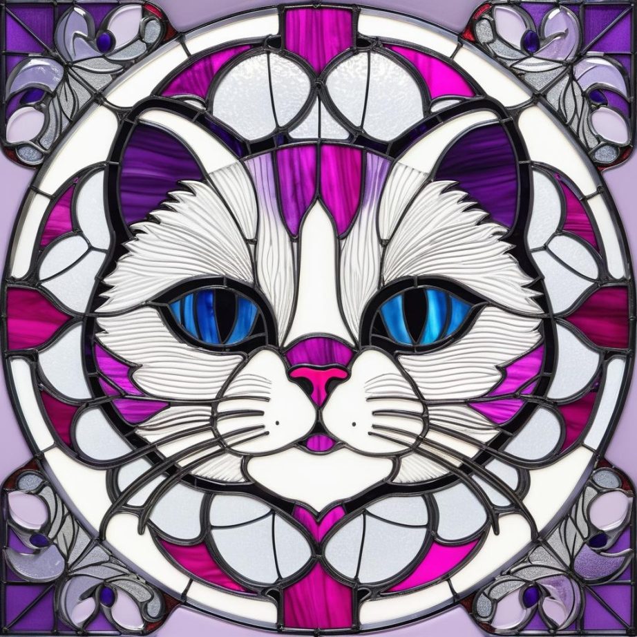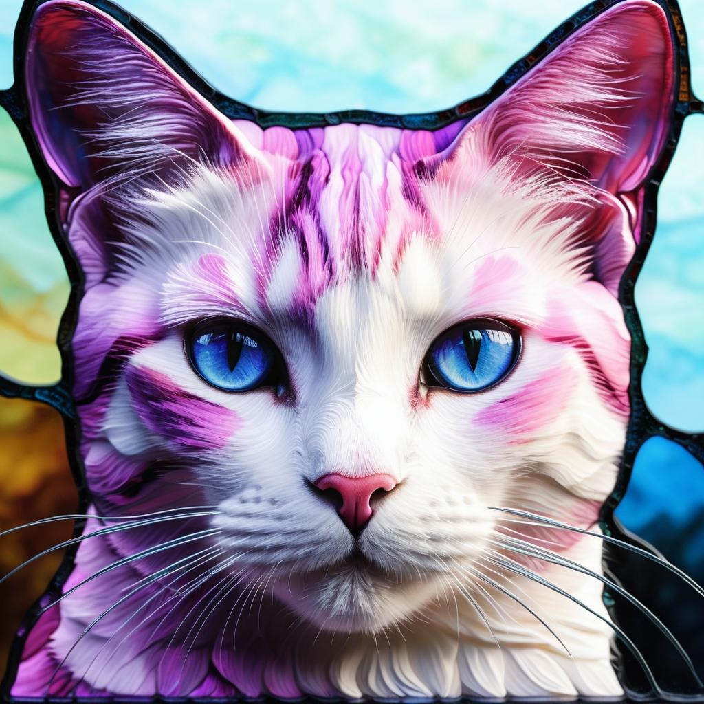 在现代艺术中,彩色玻璃风格具有一种独特的表现力和艺术魅力。这幅以猫为主题的作品,通过粉色和紫色的柔和色调和清晰的线条,成功地捕捉到了动物的优雅与神秘。彩色玻璃艺术本身就具有一种通过光影与色彩交错而产生的梦幻效果,因此它常被用来表现自然与生命的主题。在这幅作品中,艺术家选择用简约的构图与极致的配色,使得猫的形象不仅仅是一个动物的表现,更是一种情感的传递。这种艺术风格让观者不禁去思考关于优雅、宁静和神秘的意义。为了进一步提升作品的艺术性,建议在背景中加入细腻的渐变色,以增强立体感,并通过复杂的线条设计来增加作品的深度。这样的改进将使得这幅作品在视觉上更具冲击力和情感共鸣,让观者在欣赏过程中感受到更加丰富的艺术体验。