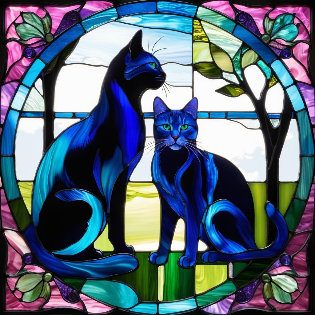 这次我们欣赏到了两幅别具一格的猫画作,采用了彩色玻璃的风格,将抽象与现实完美结合。左边的猫以粉色和紫色为主,右边的则是绿色和蓝色。每一只猫都展现出静谧而优雅的气质,仿佛在向观者诉说着它们各自的故事。如此创作不仅在色彩上给人以冲击,同时也在几何形状的运用上展现了创作者对艺术形式的深刻理解。为了进一步提升作品的视觉冲击力,可以考虑在背景中加入模糊的城市或抽象的自然景观,这不仅能丰富画面的层次感,还能赋予作品更多的叙事性。此外,通过对光影的处理,模拟阳光透过玻璃的效果,将大大增强作品的立体感和真实感。这种处理不仅能吸引观者的目光,也能使作品在艺术领域中更具辨识度和情感共鸣。