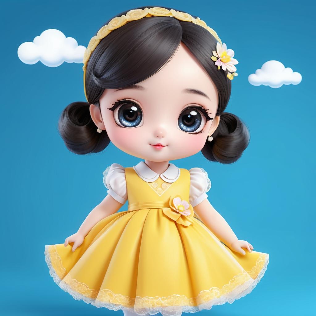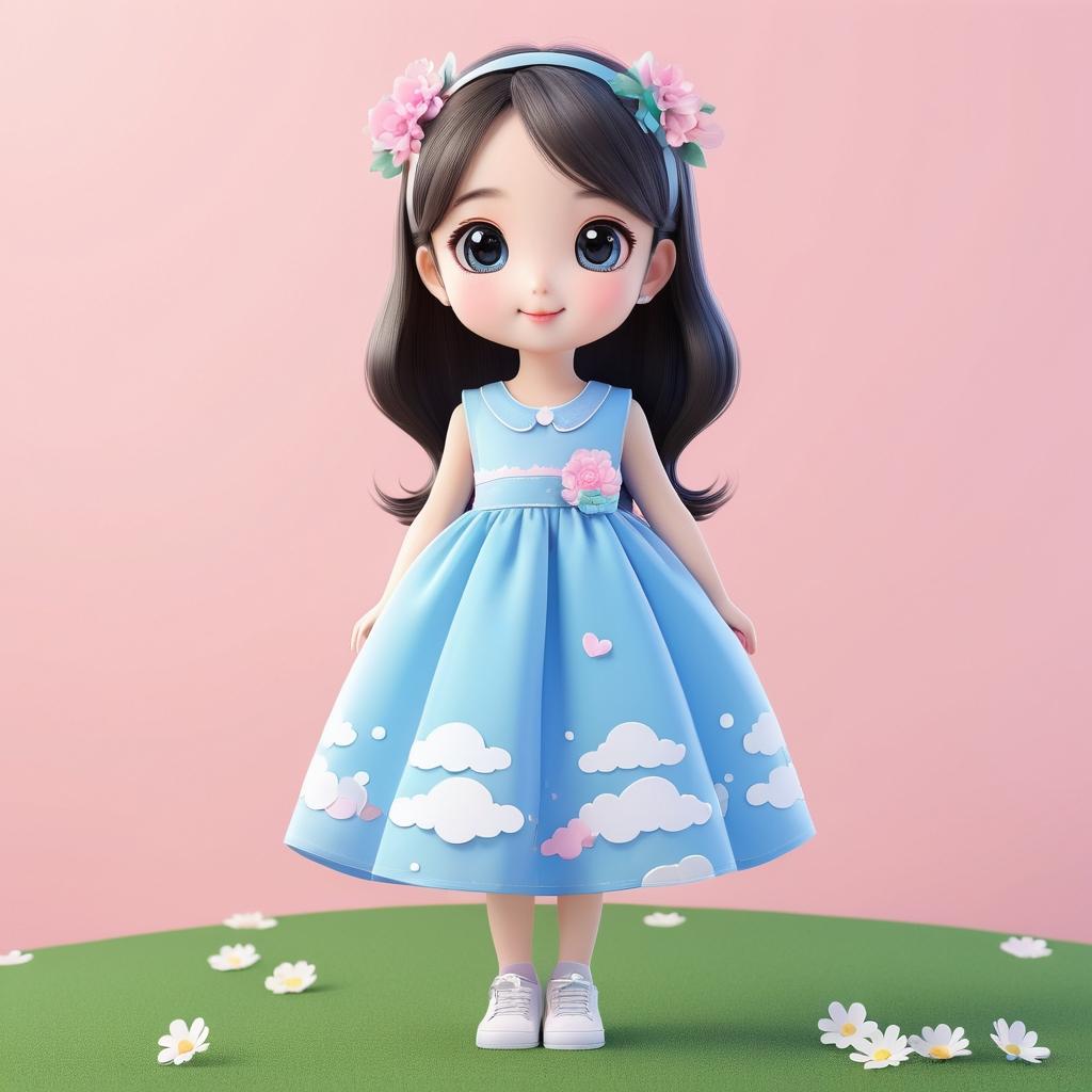这幅画展示了一位穿着长裙的卡通人物,她有着圆圆的脸和大大的眼睛。线条简单,形象可爱,传达了一种天真和纯真的情感。画面中没有使用颜色,主要依靠线条表现人物形象。