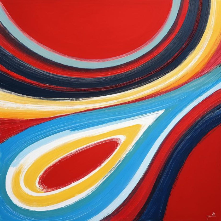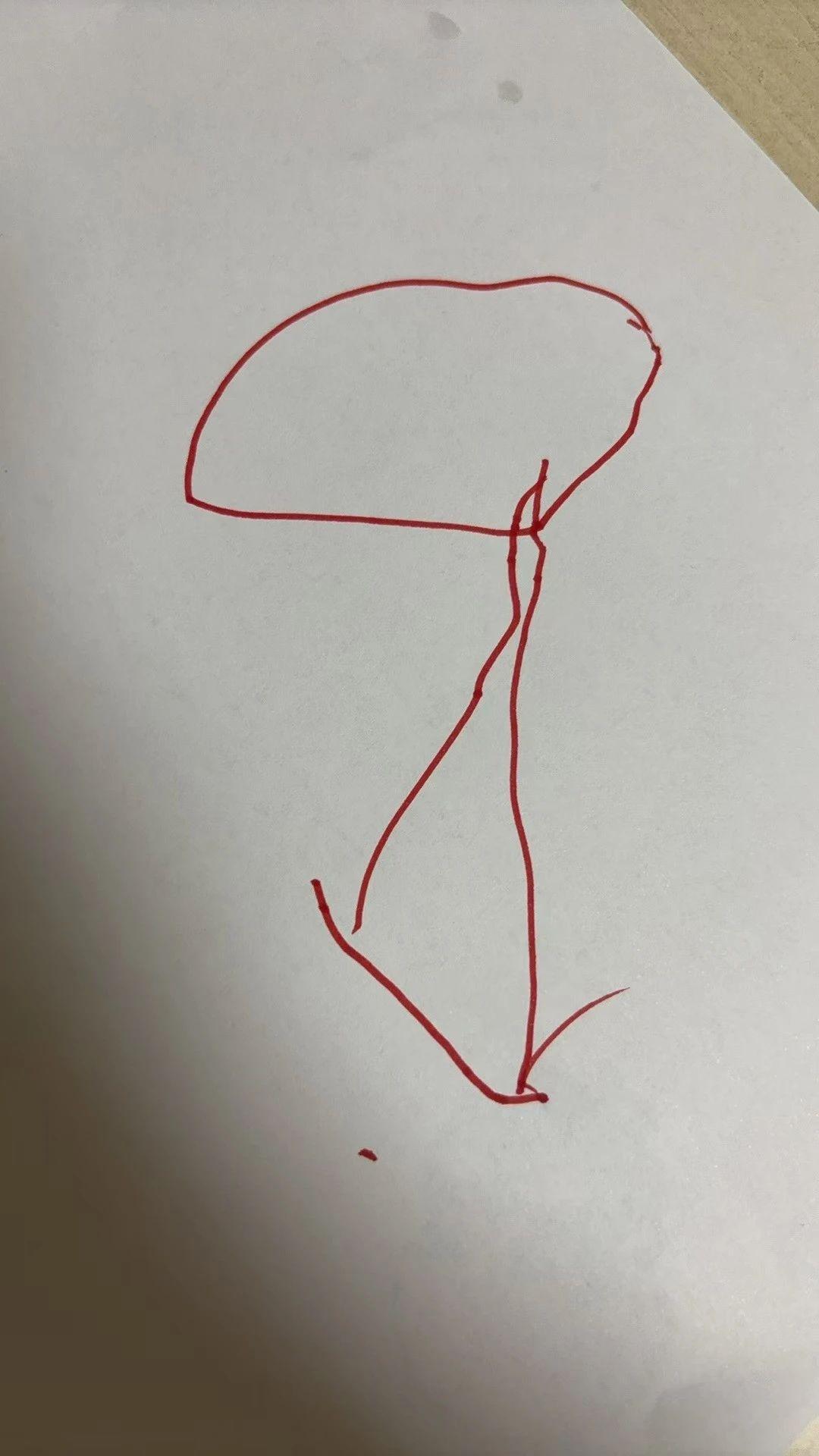 这幅作品展示了一幅简单的红色线条画,描绘了一个圆形和一个连接的长线,底部有一个弯曲的结构。画面充满了童趣和自由发挥的元素,线条流畅且富有动感。整体构图极其简约,似乎在表达一种纯粹的情感或理念,可能是在表现一种自然物体或抽象的感受。