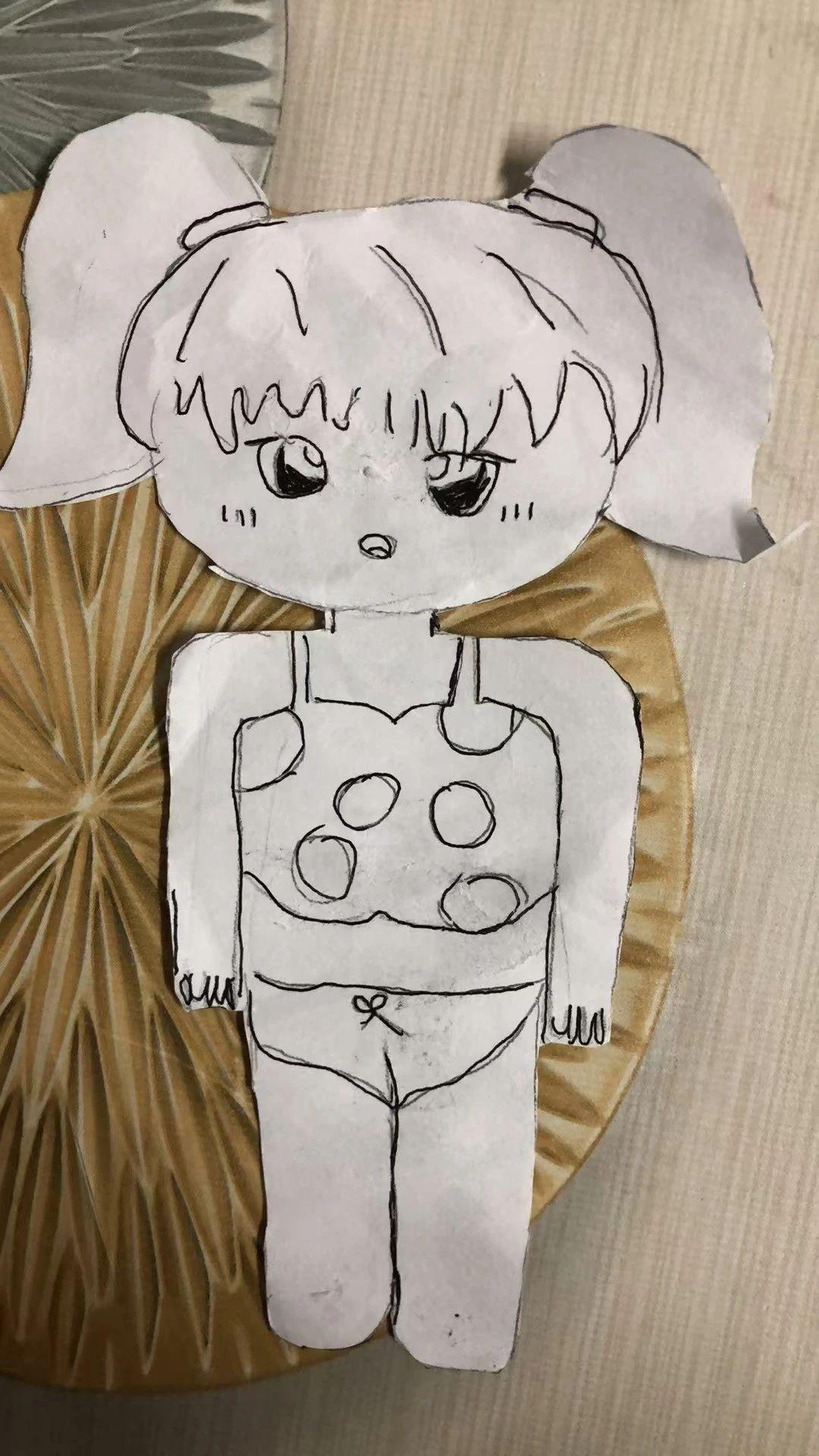 这幅作品是一幅充满童趣的卡通人物剪纸,展现了创作者对简单线条和形状的独特运用。作品中的人物形象以其天真无邪的表情和俏皮的服装吸引着观众的注意。背景的圆形纹理为画面增添了一层丰富的质感,与人物的简单风格形成鲜明对比。为了提升作品的艺术价值,可以考虑在角色的服装和背景中加入更多色彩,增强视觉冲击力和趣味性。此外,背景元素如自然景观或玩具的引入,可以赋予角色一个故事情境,使作品更具深度和情感的连结。通过细化人物的表情和姿态,作品可以更好地传达出一种生动和个性化的气息。这种设计不仅能吸引儿童的注意,也能唤起成人心中的童年记忆。