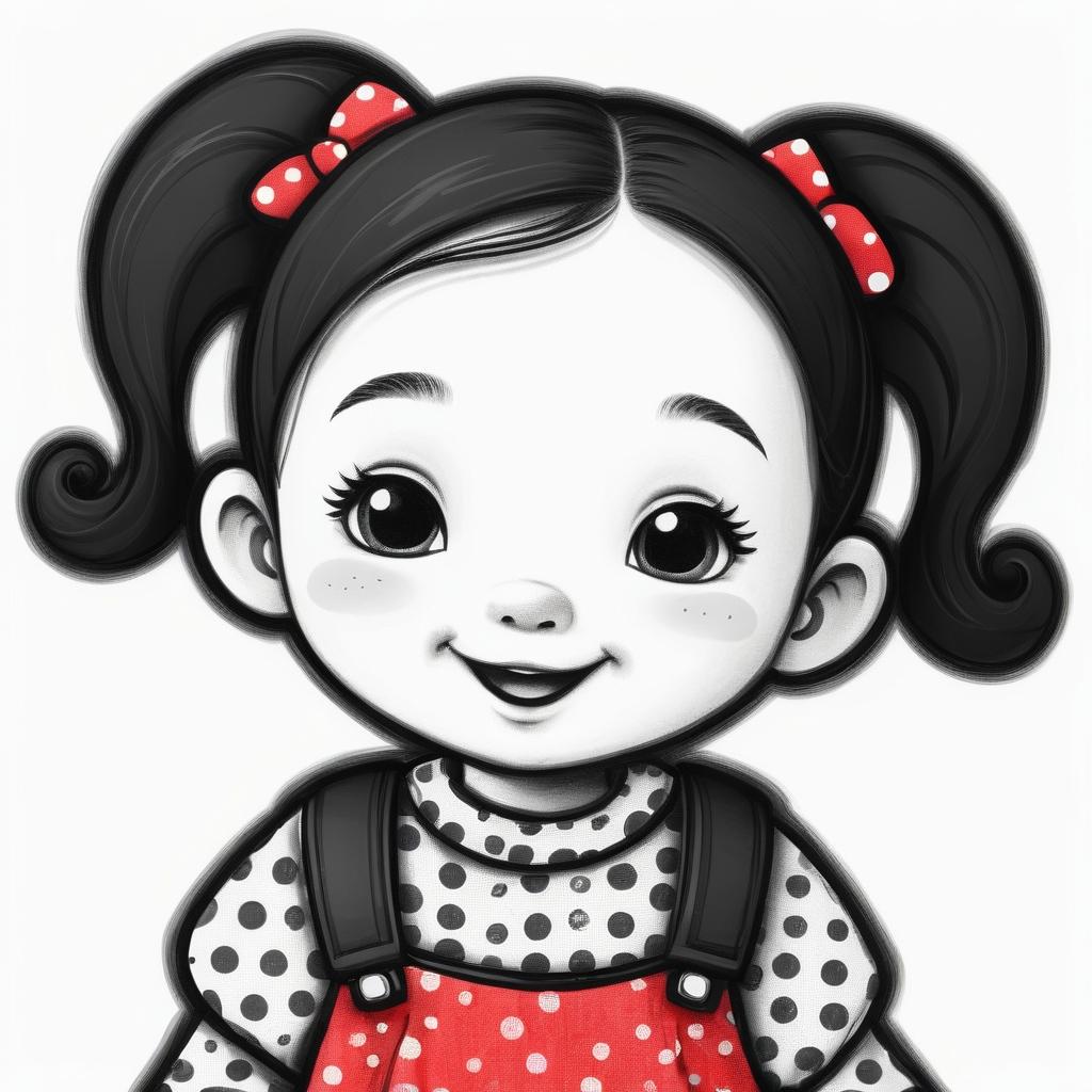 这幅作品呈现了一种纯真和俏皮的氛围,通过简单的线条和形状表达出儿童的天真无邪。可以考虑在作品中加入更多颜色,以增强视觉吸引力和趣味性。背景的纹理可以与人物的服装样式相呼应,增加整体的协调性。进一步细化人物的表情和姿态,使其更具生动感和个性。通过添加背景元素,如自然景观或玩具,赋予角色一个故事情境,从而使作品更具深度和情感的连结。