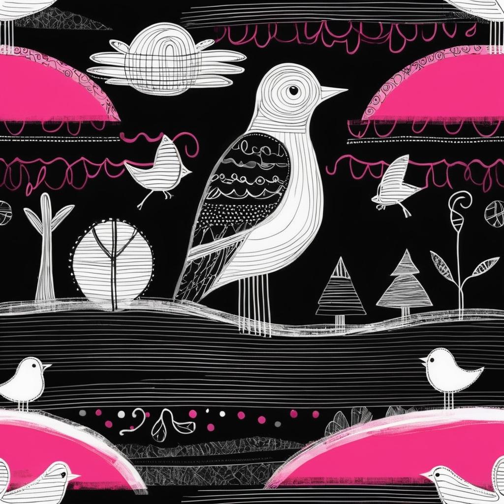 在纷繁复杂的现代艺术世界中,儿童的画作常常以其纯粹和直接的表达吸引人们的注意。这幅涂鸦作品以简单的线条和几何形状展现了一个小孩的内心世界。黑色和粉红色的线条随意而自由地穿插在画面中,传达出一种无拘无束的创作精神。这样的作品不仅仅是孩子们的艺术尝试,更是他们探索和理解世界的方式。儿童艺术专家常常鼓励孩子们通过画画来表达他们的情感和想法。在这幅作品中,我们可以看到创作者对于形状和空间的初步探索。为了提升作品的深度和复杂性,可以考虑加入更多背景元素,例如自然景观或其他动物形象,这样不仅丰富了故事性,也增强了作品的互动性和吸引力。通过这样的方式,孩子们的艺术创作可以变得更加富有表现力和情感共鸣。