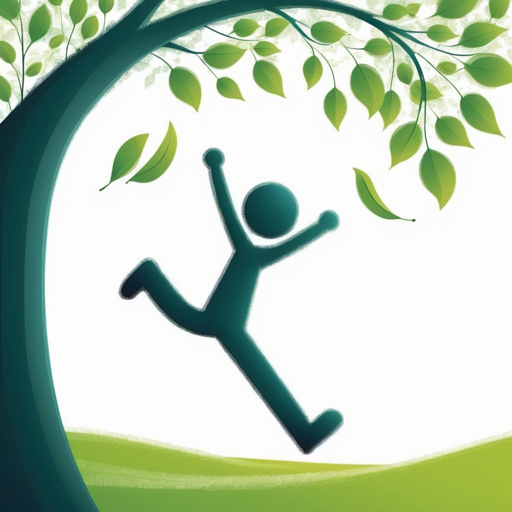这幅作品传达了一种天真与简单的快乐,利用简单的线条和形象来表达丰富的情感。为了提升作品,可以考虑增加背景元素,使三者之间形成更紧密的联系。可以加入一个自然的背景,例如一个公园或者花园,以增强树叶的自然感。此外,通过增加颜色来区分不同的元素,可以使作品更具视觉吸引力和层次感。考虑将跳跃的人形和卡通形象放置在互动的情境中,例如在玩耍或嬉戏,使作品充满动态感和故事性。最后,使用柔和的色调和渐变可以增加温暖和舒适的感觉。