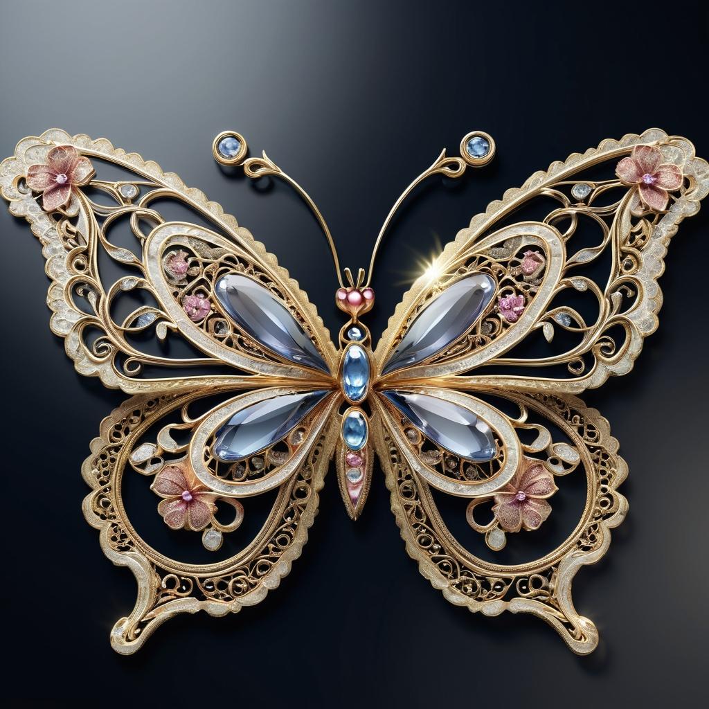 为了使这件作品在珠宝艺术领域中更具辨识度,可以尝试在蝴蝶周围添加自然元素,如花瓣或树叶,这不仅可以增强作品的自然感,还能让蝴蝶的美丽与环境相呼应。此外,选用不同的金属材质,诸如玫瑰金或白金,可以为作品注入新的活力。若能在翅膀上点缀小型宝石,必将为作品增添一层奢华的质感。
