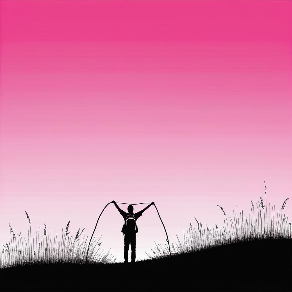 这幅简单而充满活力的火柴人作品,虽然以极简的方式呈现,但却传达了丰富的情感。明亮的粉红色背景与黑色的线条形成鲜明对比,使得火柴人的动态姿态显得格外生动。这种色彩的运用不仅吸引眼球,还赋予作品一种欢乐和活力的氛围。简单的构图让观众可以自由地诠释火柴人的情感状态,可能是一种玩耍时的欢愉,也可能是舞蹈中的自由。这种开放式的表达方式尤其适合儿童艺术,因为它鼓励了创造性思维和情感的直接表达。为了使作品更加丰富,可以考虑在背景中添加一些简单的元素,如云朵、太阳或其他火柴人角色,以形成一个更完整的图像故事。此外,通过不同线条的运用和简单的几何纹理,作品可以在保持简约美学的基础上,增加视觉的层次和趣味。这种创新使得作品不仅在视觉上吸引人,更在情感上引人共鸣,成为一种极具表现力的艺术形式。
