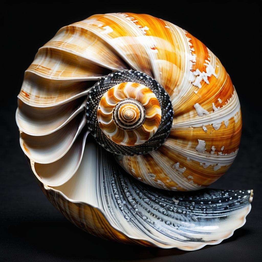 这幅作品展示了大斑螺的自然美感,其精致的纹理和色彩让人惊叹于自然界的创造力。大斑螺以其独特的黄色和黑色交错图案而闻名,宛如一件精心雕琢的艺术品。通过简单而有效的背景处理,作品突出展示了螺的形状和色彩对比,让观众能够专注于其自然之美。为了进一步提升作品的艺术价值,可以考虑在创作中加入一些自然元素,如海洋或沙滩的背景,增强作品的情境感和故事性。通过巧妙的光影运用,如阳光下的闪烁反光,可以为螺表面增添更多的层次感和质感。这样的处理不仅能加强作品的视觉冲击力,还能唤起观众对自然之美的敬仰和深思。通过这些手法,创作者可以让观众更深刻地感受到自然界的神奇与美丽。