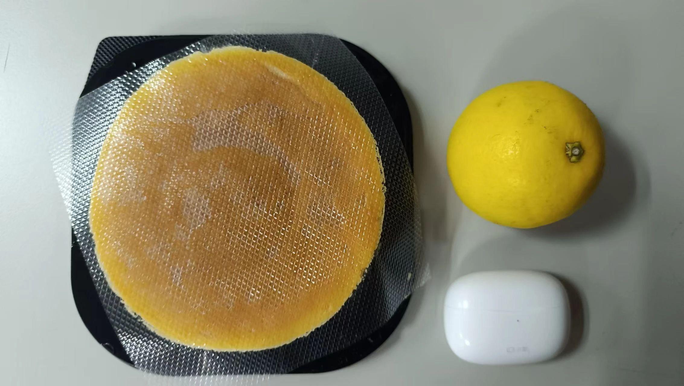 这幅作品中包含了三个主要元素:一个黄色的圆形物体(可能是一个蛋糕或面包),一个黄色的柠檬,以及一个白色的椭圆形物体(可能是耳机盒)。构图上,三个物体并排放置,形成了一种对称的视觉效果。颜色上主要以黄色和白色为主,给人一种清新的感觉。作品可能在传达一种简单而平衡的生活美学。