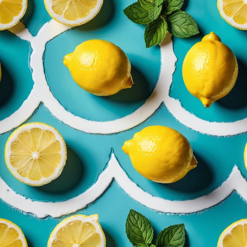 这幅作品呈现了一种日常物品的简约美学,通过色彩的对比和物体的排列,体现了一种现代生活的精致与平衡。可以考虑将背景变为更加丰富的纹理,如大理石或木质纹理,以增强视觉效果。同时,增加光影效果,使物体更具立体感。可以尝试将柠檬切开,展示其内部结构,增加趣味性和层次感。整个作品可以通过添加一些小的装饰元素,如薄荷叶或糖粉,来增强其视觉吸引力和艺术性。
