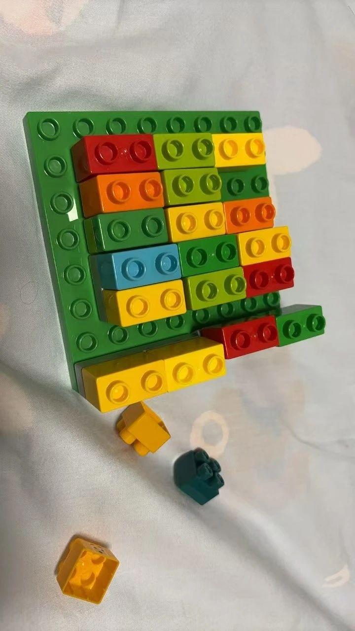这幅作品通过简单的积木排列,展示了色彩的丰富和组合的多样性。可以在此基础上引入更多的形状和层次,创造出更复杂的结构,或者加入背景故事,如一个小镇或一个动物园,使作品更具叙述性。通过使用不同质感的材料或者引入光影变化,可以增加作品的深度和艺术性。此外,考虑在积木之间添加一些细节,如植物或小人偶,来增强作品的互动性和趣味性。