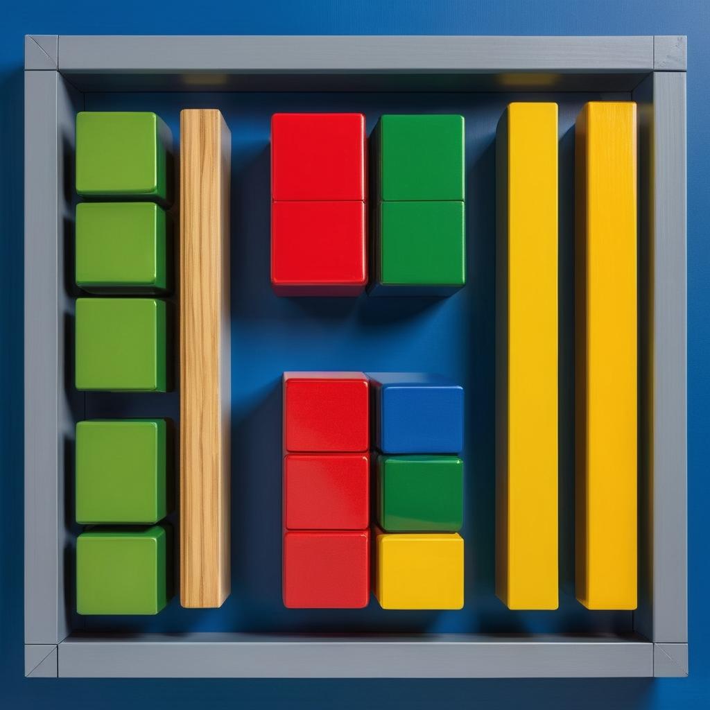 这幅作品以简单而鲜明的色彩组合吸引了观者的目光。通过排列有序的积木,创作者传达了一种活泼和富有创造力的氛围。绿色、黄色、红色和蓝色的巧妙搭配,不仅展现了色彩的和谐美,还唤起了人们对童年时光的美好回忆。儿童艺术专家指出,这样的作品可以通过引入更多的形状和层次来丰富其视觉效果。例如,可以尝试构建一个小镇或动物园的背景,增加作品的叙述性和深度。此外,通过使用不同质感的材料或引入光影变化,也可以赋予作品更多的生命力。为了增强互动性,可以在积木之间加入一些细节,如植物或小人偶,让作品更具趣味性和吸引力。这样一幅作品,不仅仅是积木的组合,更是一次创造力的盛宴,激发着每一位观者内心深处的童心和想象力。