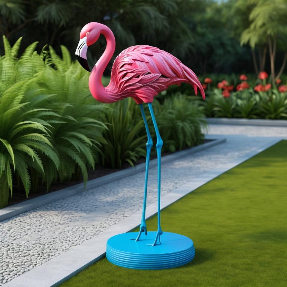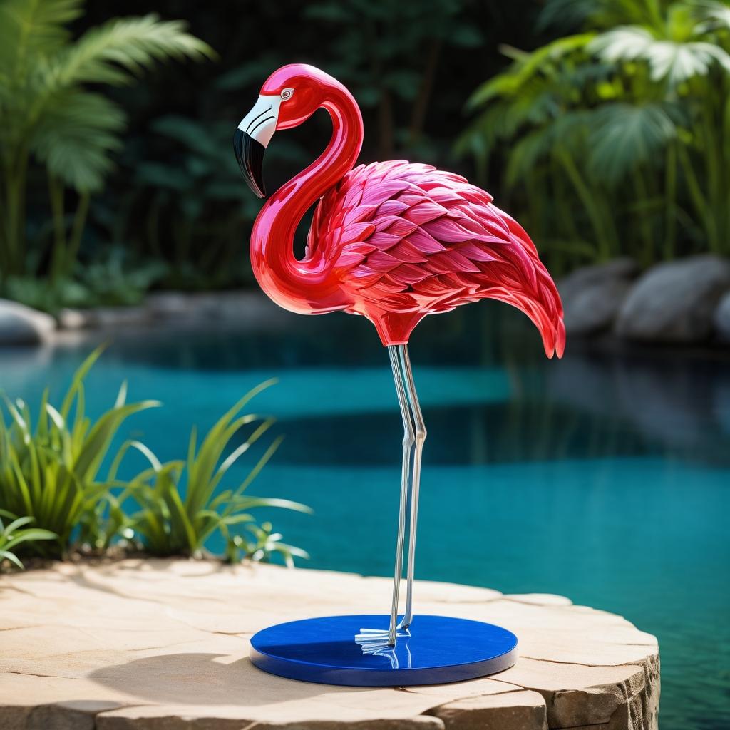 这幅火烈鸟雕塑以其鲜艳的色彩和独特的造型吸引了我们的目光。作品采用了简单而有效的色彩搭配,红色的火烈鸟与蓝绿色的基座形成了鲜明的对比。这种色彩组合不仅符合儿童的审美趣味,也为作品增添了一份活力和动感。雕塑中火烈鸟的姿态优雅,仿佛在静静地享受自然的宁静与美好。这种表现手法传达了创作者对大自然和生灵的赞美。在创作中,如果能增加更多的细节,如在基座上增添小动物或植物,会使整个作品更加丰富多彩。这样的创作不仅可以提升作品的艺术价值,也能激发观众的想象力,使他们在欣赏作品的同时,感受到大自然的奇妙与美好。通过这种方式,作品不仅仅是一件艺术品,更是一个与观众互动的媒介,激发他们对自然的热爱和保护。