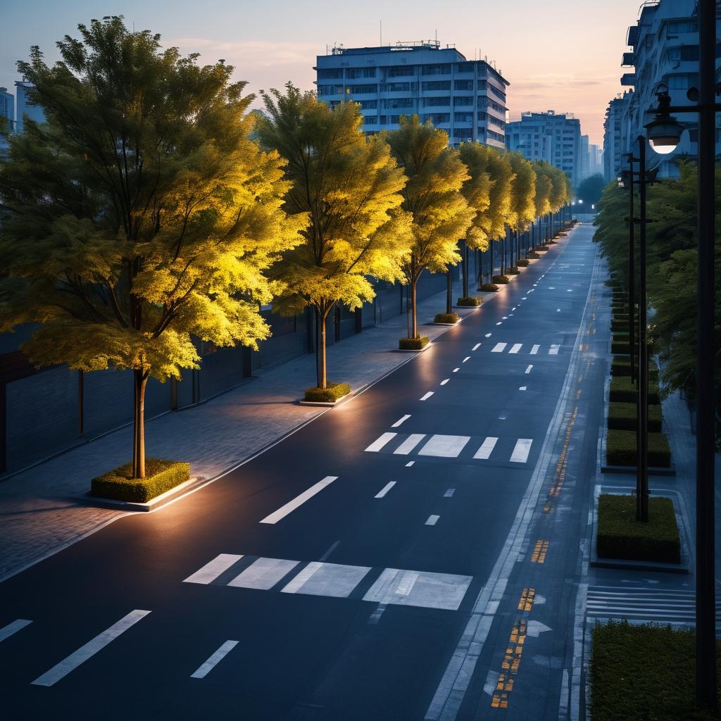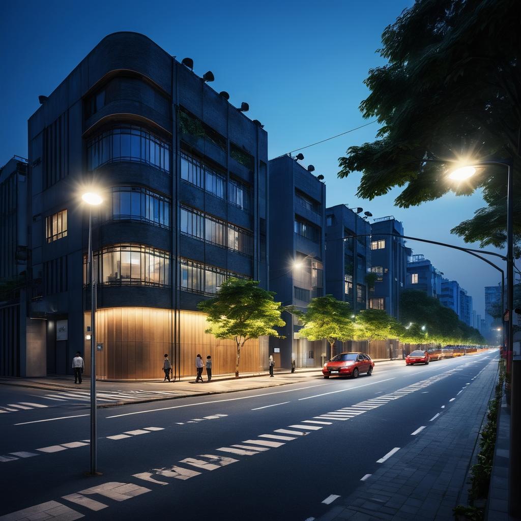 这幅作品通过城市建筑与自然环境的结合,传达了一种现代城市生活的宁静与秩序。要提升这幅作品,可以在光影效果上做更深入的处理,使灯光与树影的互动更为突出。此外,可以增加一些动态元素,如行走的人群或飞鸟,与静态的建筑形成对比,增加画面的生动性。在色调上,可以尝试加入一些暖色调的灯光效果,以创造更温馨的氛围。