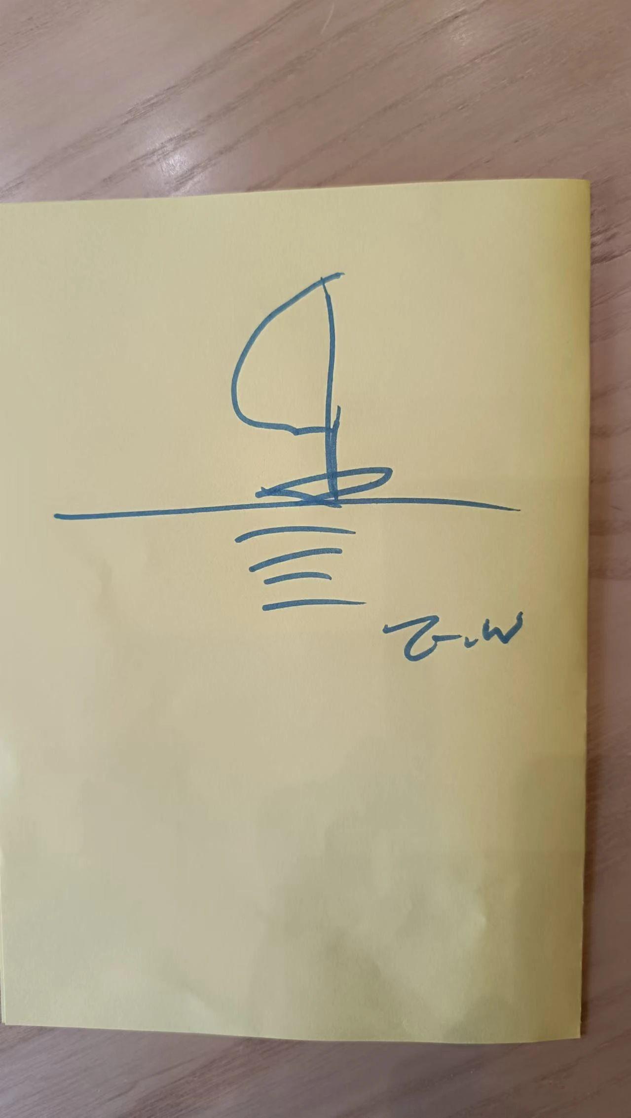 这幅作品以简单的线条和黄色背景为基础,呈现了一种极简主义风格。中心元素似乎是一种抽象图案,可能代表一种船或其他物体,底部的波浪线条可能暗示水或移动的能量。整个作品传达了一种宁静和流动的感觉。