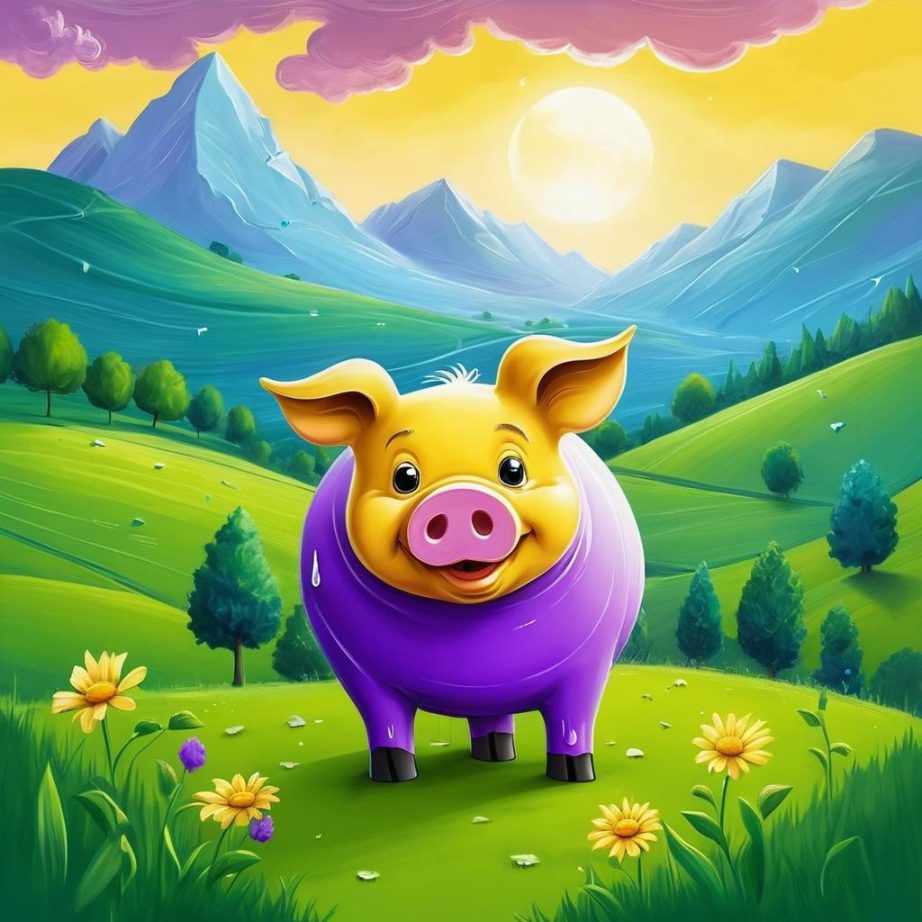 这幅作品通过简单的线条和明亮的色彩传达出深刻的情感。黄色小猪的泪水引人注目,可能在表达一种失落的情绪,而背景中简单的山丘则为画面增添了一丝宁静。可以考虑在背景中增加更多细节,如云朵或太阳,以增强画面的层次感。同时,可以通过调整色彩的深浅来突出情感的变化。紫色人物的姿态也可以更加生动,以更好地展示情感互动。