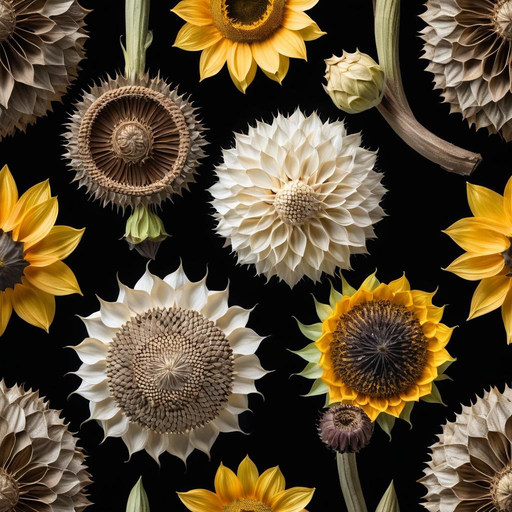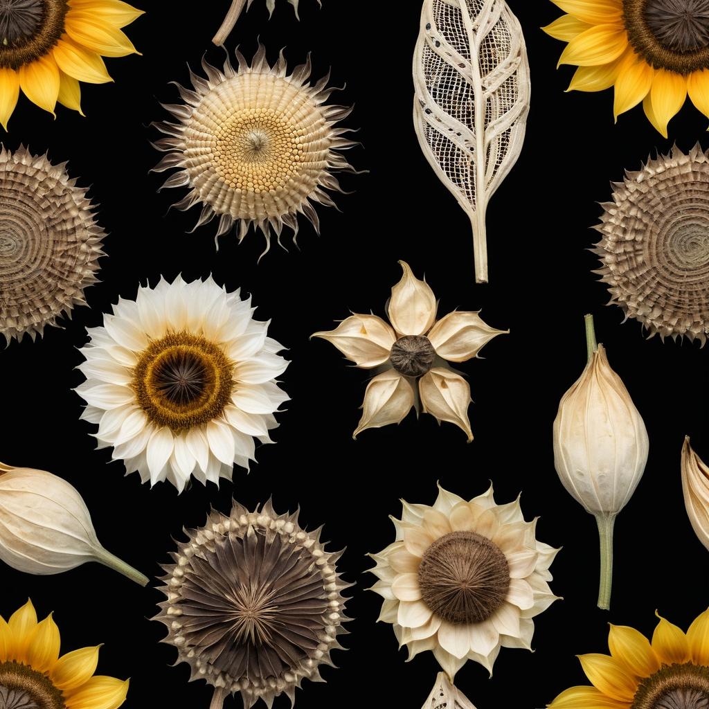 这幅作品展示了自然界的几何之美,通过对向日葵与莲蓬的特写,呈现出一种独特的视觉体验。创作者可以尝试融入更多的颜色变化,或是增加不同植物的种子结构,形成一种多样性的视觉盛宴。此外,可以通过微距拍摄技术来展现这些种子结构的细节,使观众感受到生命的复杂与精致。通过这样的方式,作品将不仅仅停留在表现自然之美,更能激发观众对生命循环和自然界多样性的思考。