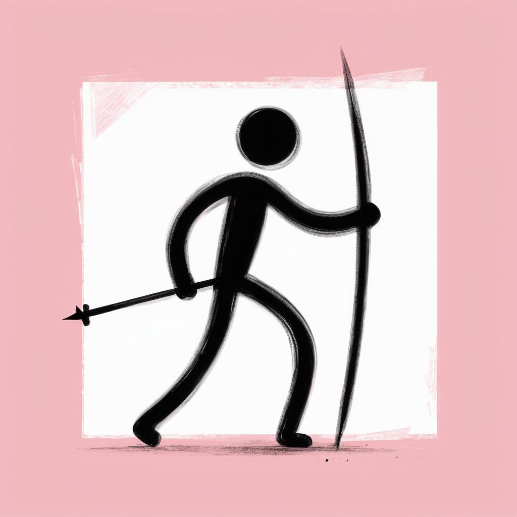 这幅作品通过简单的线条勾勒出一个持矛人物,背景的粉色调为空间提供了一种柔和的对比。这种极简主义的表达方式,强调了形状和动作的基本特征。为了提升作品的艺术深度,可以引入更多的背景元素或细节,如环境特征或者其他文化符号,以增强故事性和情感共鸣。可以尝试使用更丰富的色彩对比或者纹理变化,来赋予画面更多的层次感和深度,使其在极简的风格中仍然能传递出丰富的信息和情感。