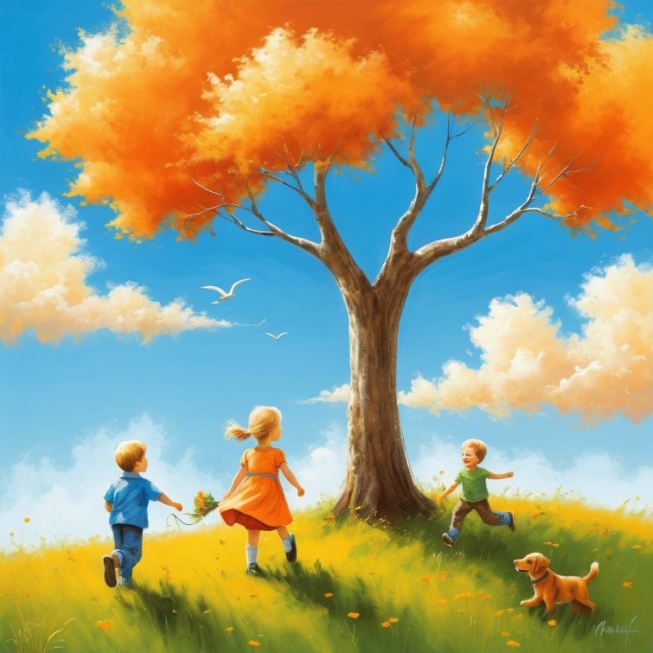 这幅作品以其简单而充满童趣的风格吸引了我们的注意。使用橙色蜡笔的主要色调,画家成功地传达了一种温馨和谐的家庭氛围。三个人物的动态描绘和他们之间的互动,营造出一种轻松愉快的情感场景。背景中的太阳和云朵,虽简单却为整个画面增添了活力。这种简约的风格让人想起了Joan Miró的作品,他以其天真而富有表现力的画风著称。在提升这幅作品的过程中,可以考虑通过丰富背景细节,如加入更多种类的植物和变化多端的云彩,来增加画面的深度。同时,增加人物的面部表情和肢体细节,可以更好地呈现出家庭互动的情感和温暖。这种提升不仅使作品在视觉上更具吸引力,也在情感上更具共鸣。