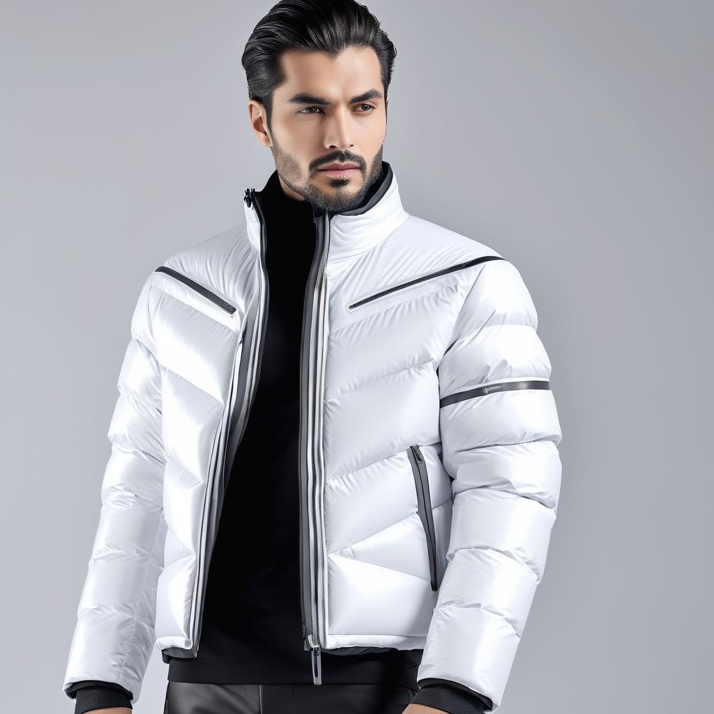 这幅手稿以其简单而富有表现力的线条,引发了对未来派羽绒服设计的深刻思考。线条的流动性与优雅性成为设计的核心灵感来源。在设计中,采用不对称剪裁和流线型结构,打造出具有未来感的羽绒服,既保暖又时尚。色彩的选择集中于单色调,突显线条的简洁之美,并通过光泽面料强化视觉效果。这种设计不仅在形式上体现了极简主义的精髓,也在功能上实现了实用性与美学的统一。通过真人模特的展示,观众可以更直观地感受到设计的创新与独特之处。