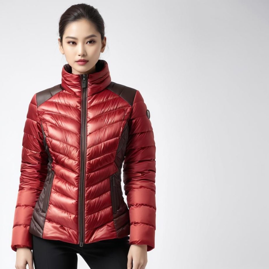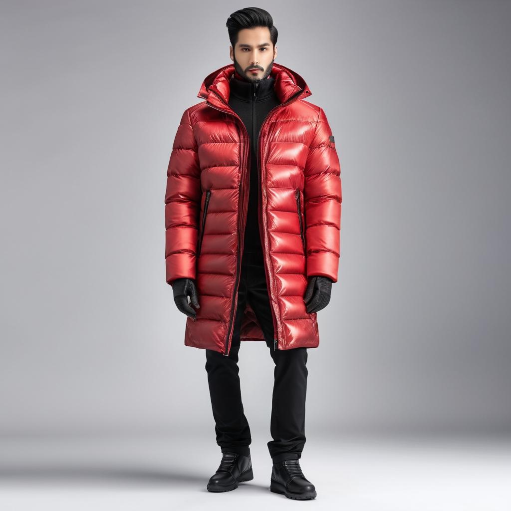 灵感来源于红枣丰富的纹理和鲜艳的红色调,可将其转化为羽绒服的独特纹理设计与色彩主题。在设计中,采用枣子的自然纹理作为羽绒服表面的压花图案,增强视觉层次感。色彩上,选择温暖的红色与深棕色相结合,形成具有民族风情的配色方案。使用具有光泽感的面料,模拟红枣表面的自然光泽,使整个羽绒服呈现出自然与现代的结合,最终由真人模特展示,体现出设计的独特性与功能性。