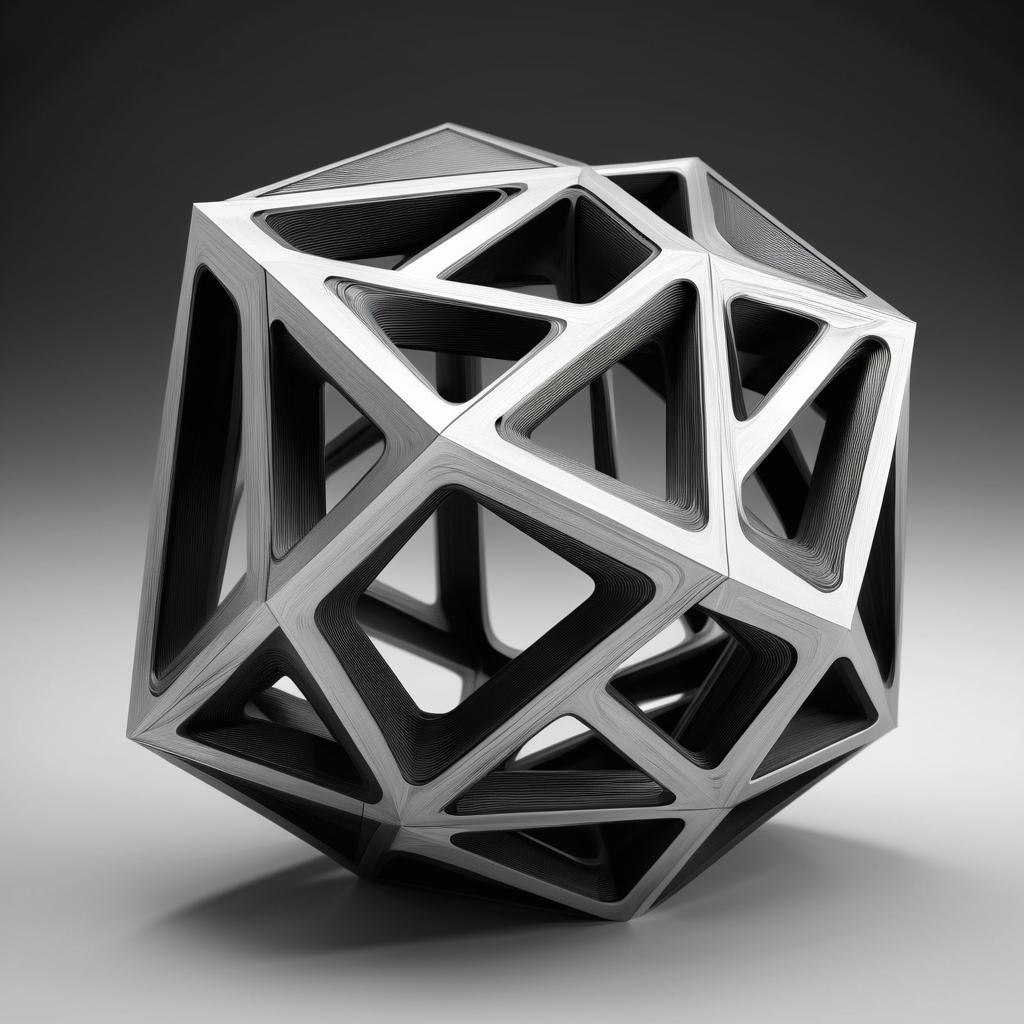 这幅手稿展示了一种精简而有力的艺术表达,通过流畅的线条和几何形状的组合,传达出一种现代雕塑的潜在可能。作品的设计中,线条的交错仿佛象征着建筑与自然之间的对话,表现出一种动态的平衡。尽管没有色彩的辅助,形状的分割和整体的布局已经传递出一种坚韧不拔的情感。通过这些元素,雕塑设计可以将简洁与细节相结合,形成一种新的视觉语言。在雕塑创作中,材质的选择和表面处理将是关键,以金属为基底的雕塑可以通过拉丝或抛光技术,进一步加强其空间表现力和光影效果。整体设计应当保持简洁,但在细节上可以更为雕琢,以增加艺术感染力。通过这样的设计,作品不仅在形式上实现统一,也在功能上与环境产生共鸣,带给观众深刻的视觉体验。