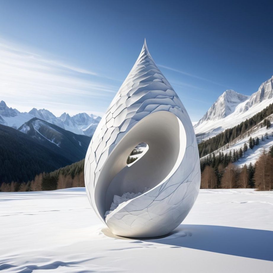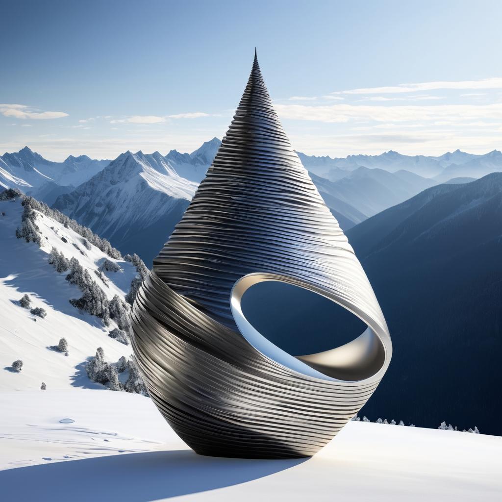 将这幅简单的手稿转化为雕塑设计,可以通过强调其自然元素来增强空间表现力。山的锥形可用石材雕刻,表现出其坚固与稳定,而雪线部分则可以通过不同材质的对比来展示出自然界的细腻变化。太阳的线条可用金属或光滑的材质表现,增加雕塑的光影互动效果。整体设计应注重自然的简约与和谐美,使其在空间中呈现出宁静而有力的自然美感。