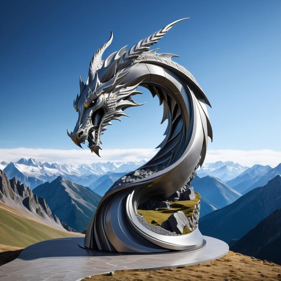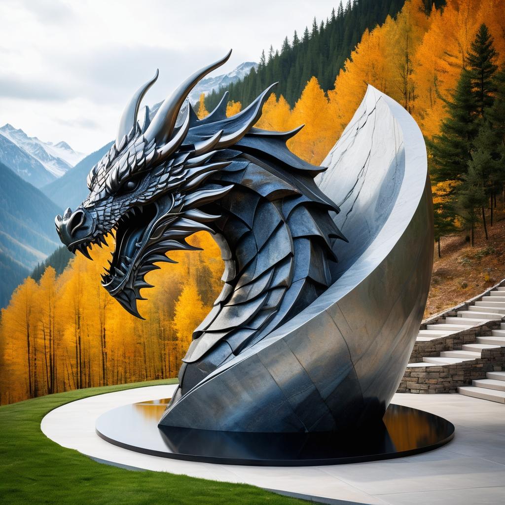 将这幅手稿转化为雕塑设计时,可以将龙的形态作为雕塑的主体,以流动的线条表现龙的动态。山的形状可以通过不同材质的对比来表现,例如使用石材或金属来体现山的稳重和龙的灵动。小屋和人影可以作为雕塑中的细节,展现人与自然的互动。整体设计应强调自然的力量和流动感,创造出具有视觉冲击力的空间表现。