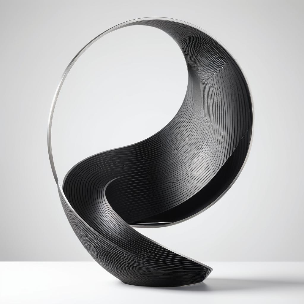 将这幅手稿转换为雕塑设计时,可以考虑利用简洁的几何形状作为雕塑的主体结构。使用光滑的金属材质来增强作品的现代感,同时保留手稿中的线条流畅感。雕塑的主体可设计为一个抽象的人物形象,周围环境的圆形元素可以通过悬挂或底座的设计融入其中,增强整体的空间表现力。作品应展现出一种简约而富有表现力的视觉效果。