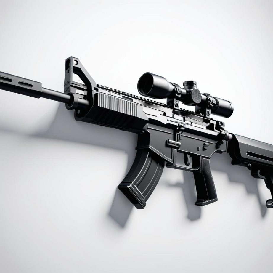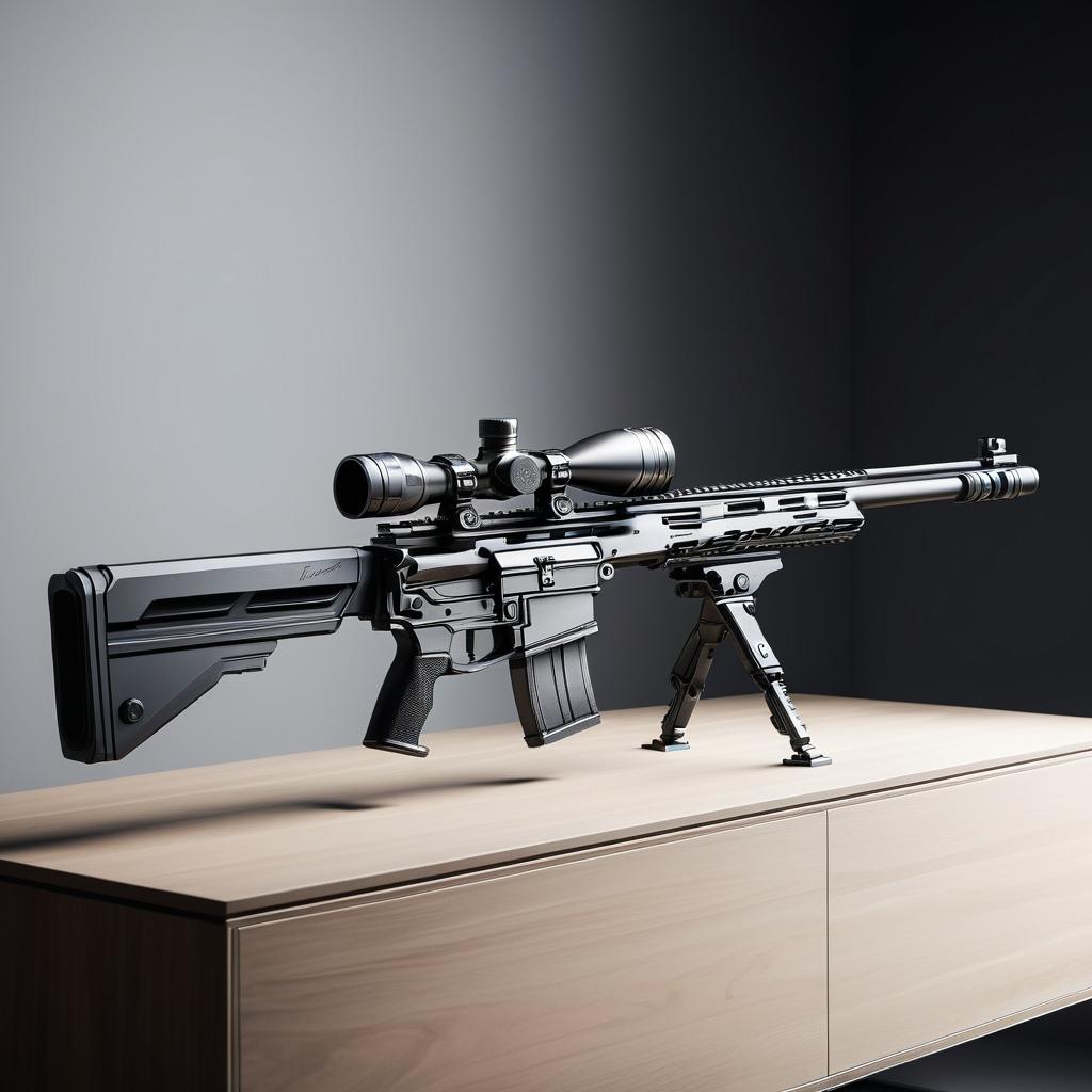 将这幅手稿中的狙击步枪设计转化为一件现代雕塑作品,可以通过夸张其线条和形状来增强其艺术表现力。考虑使用金属材料来体现武器的坚固感,同时通过表面处理使之具有现代感。雕塑的设计可以将原始形态简化为更加流畅的几何结构,强调枪支的功能性与美学。通过光影效果的变化,增强雕塑在空间中的存在感,使其成为一件既具视觉冲击力又富有深意的艺术品。